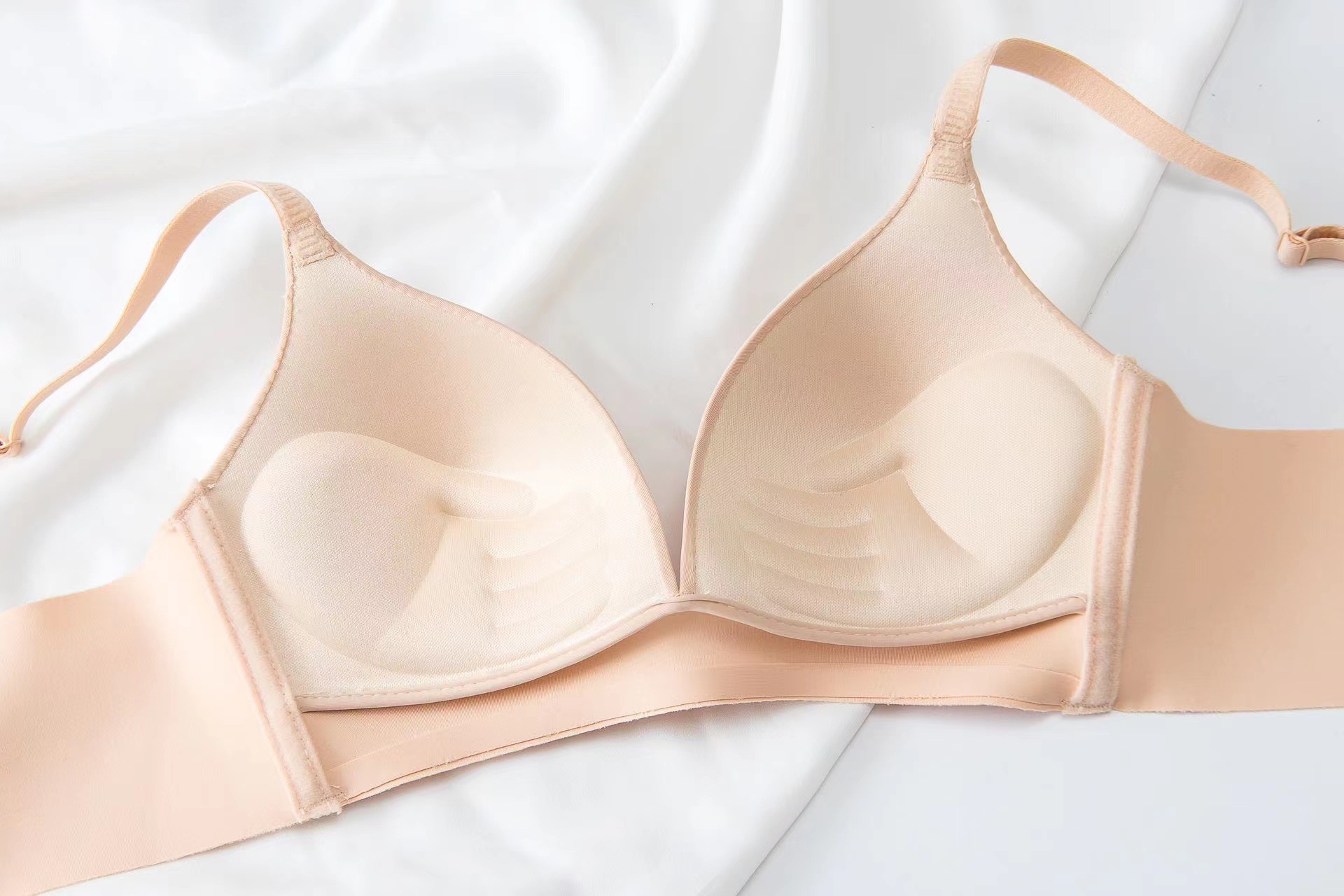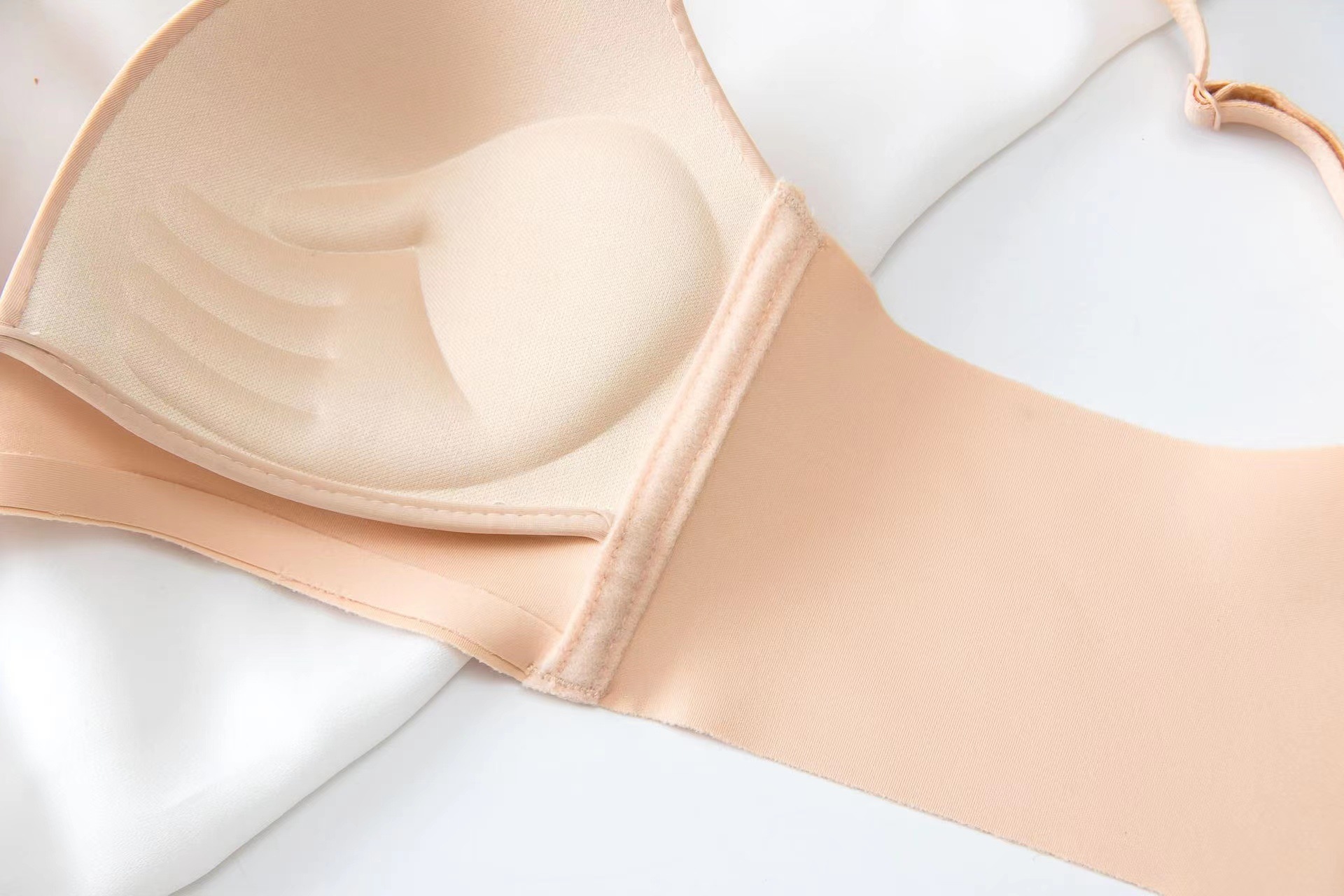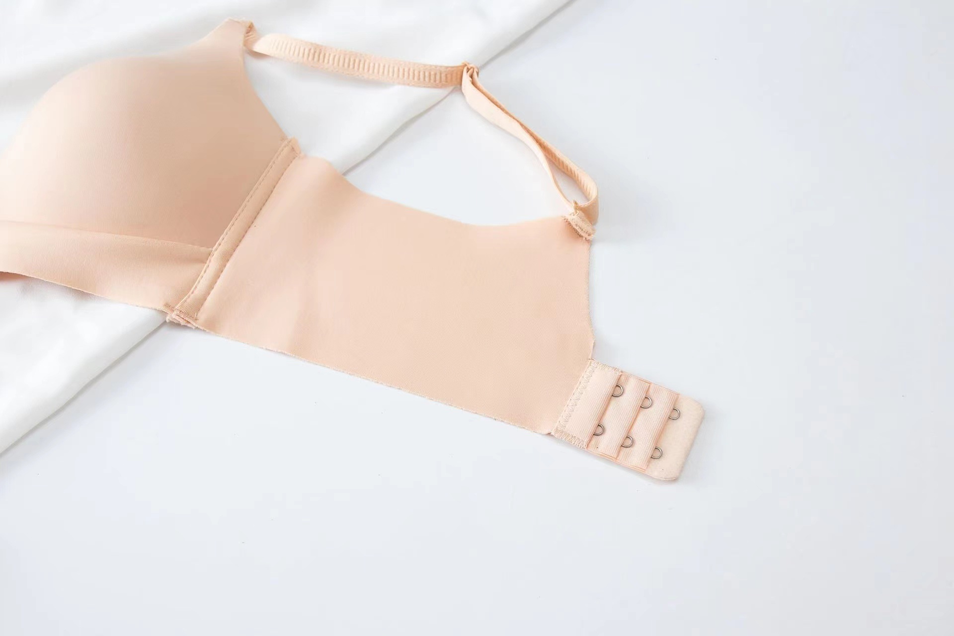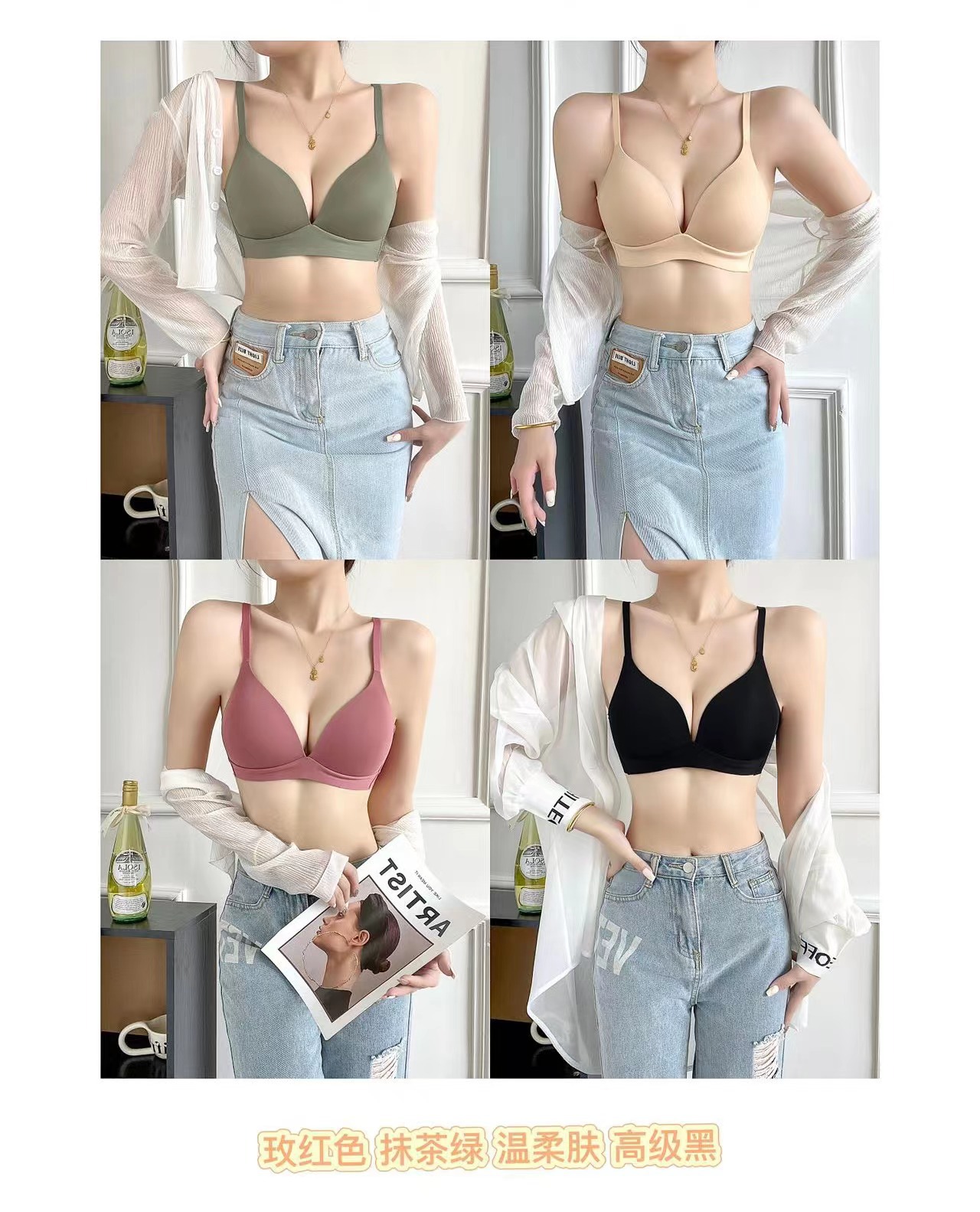 일본식 가볍고 얇은 옷 흔적없는 속옷 여성용 비 스틸 링 큰 가슴 작은 손바닥재 삼각형 컵 광택 브래지어