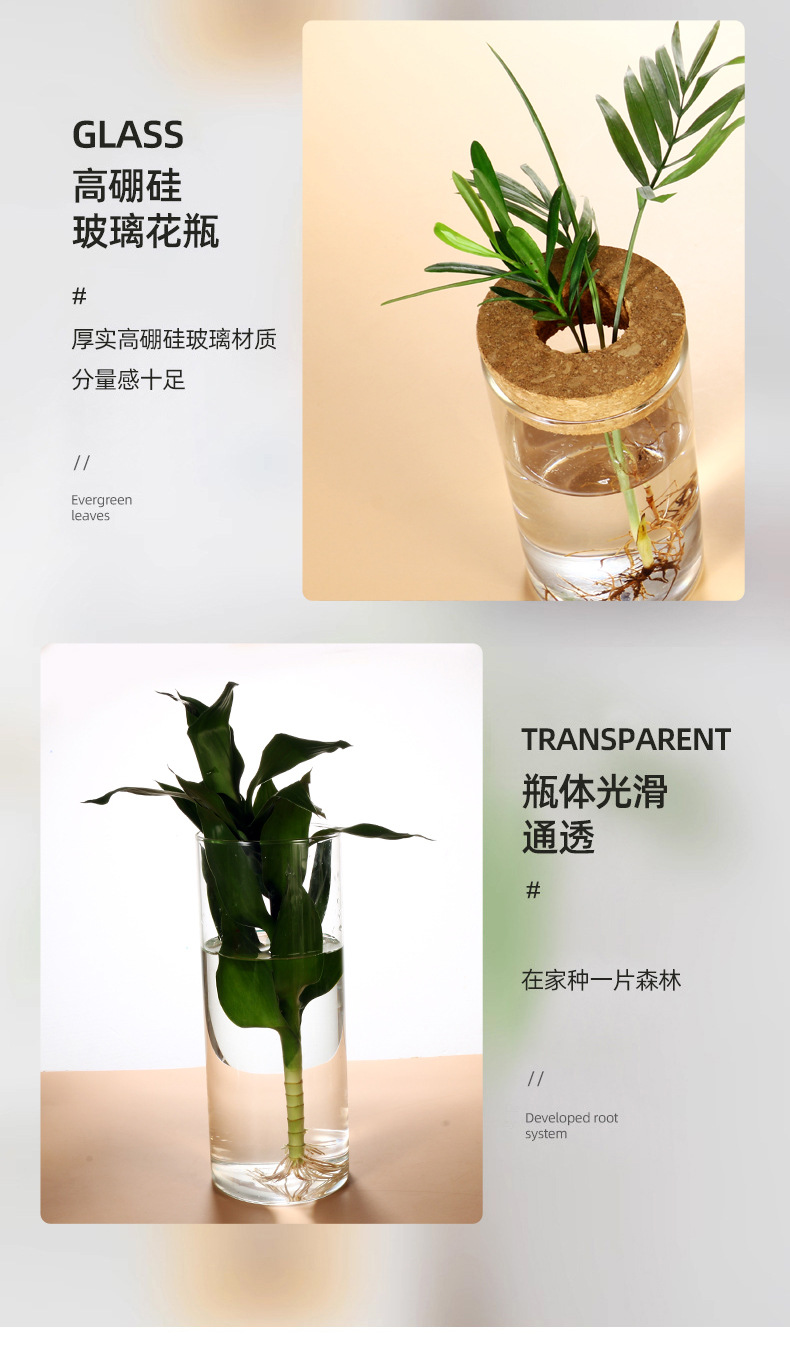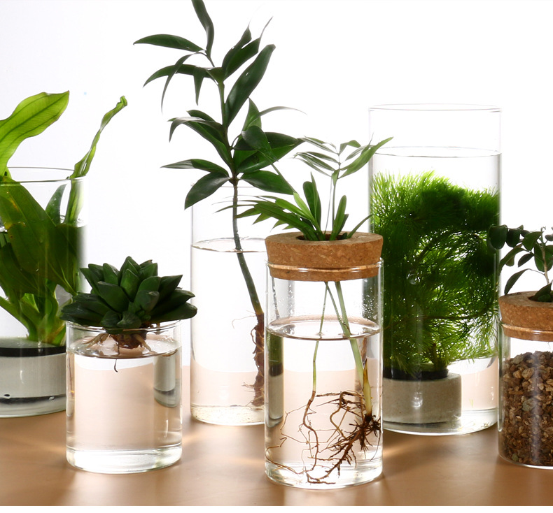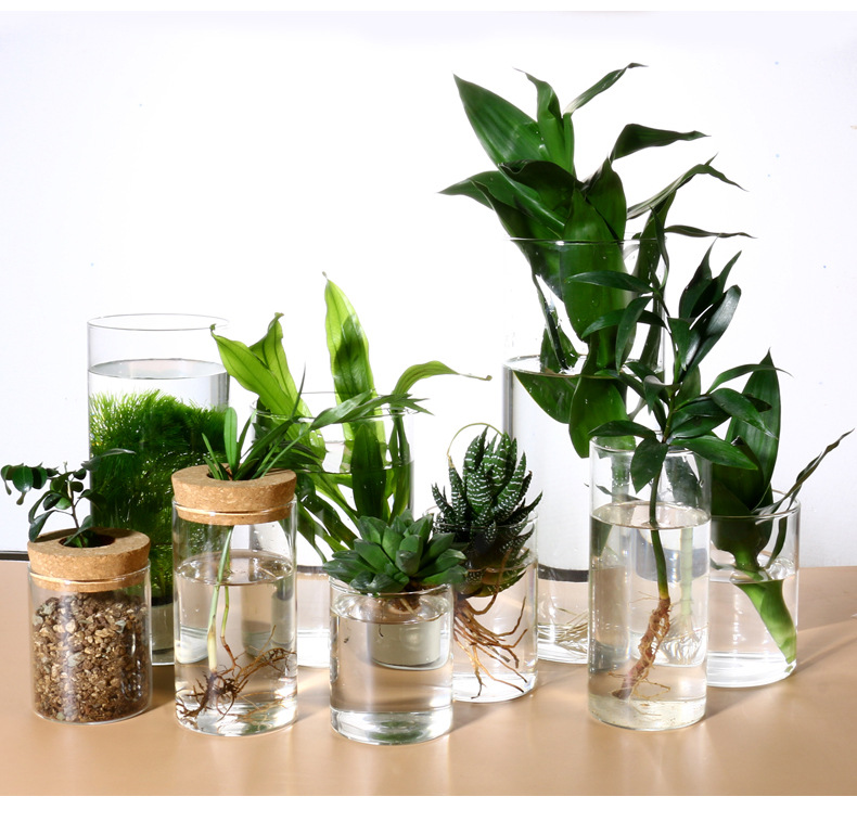 도매 유리 꽃병 투명 수경 식물 pothos 수경 용기 화분 데스크탑 녹색 식물 수경 용기 장식품스토어 가기