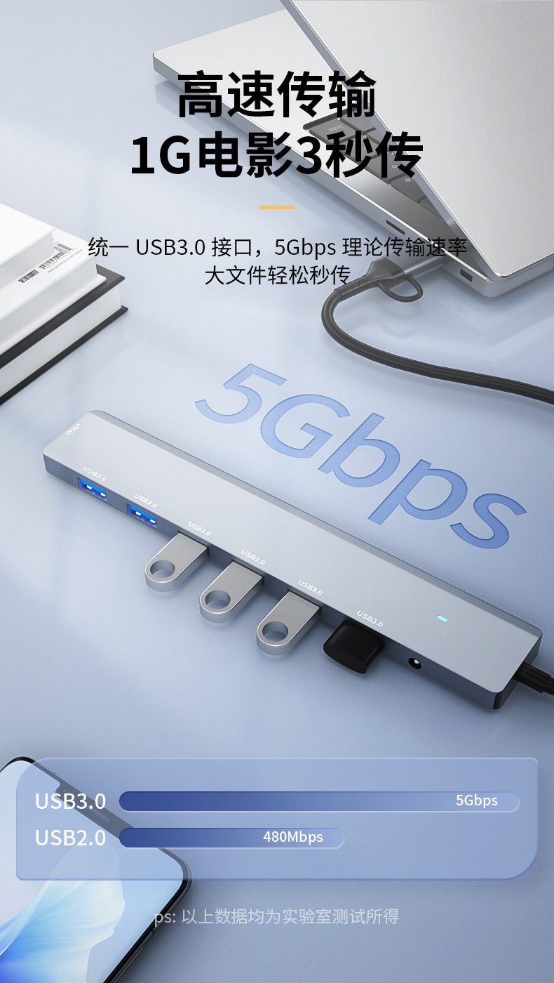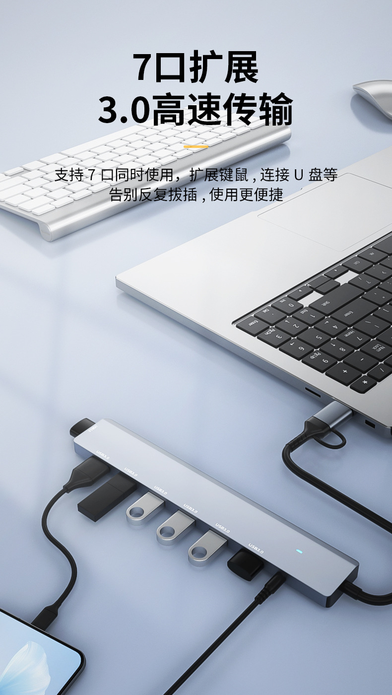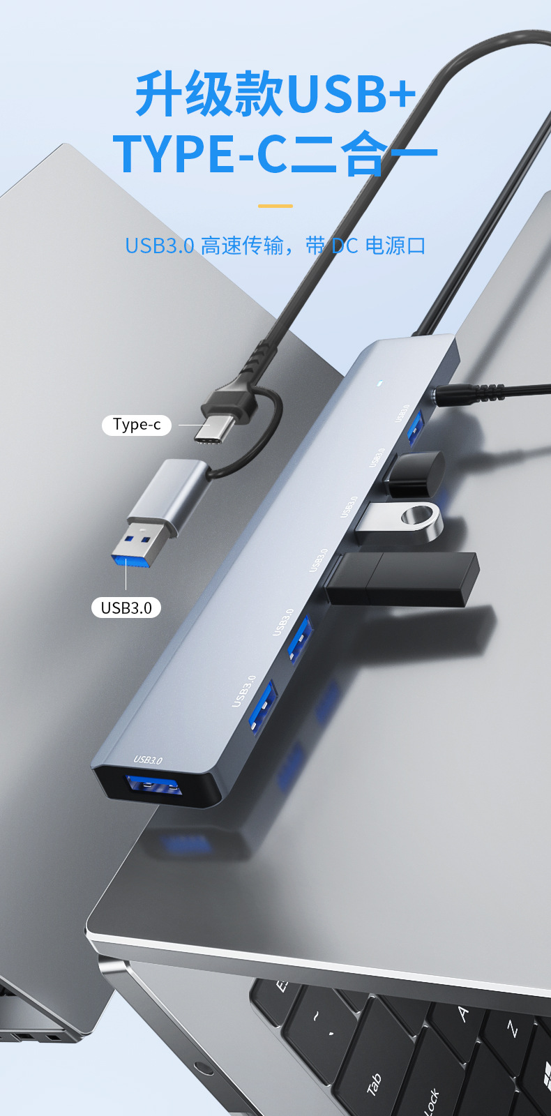 USB3.0 허브 7포트 허브 컴퓨터 고속 확장 USB/타입C 2-in-1 분배기 3.0 알루미늄 합금스토어 가기