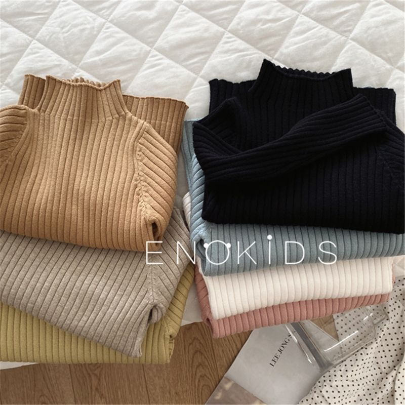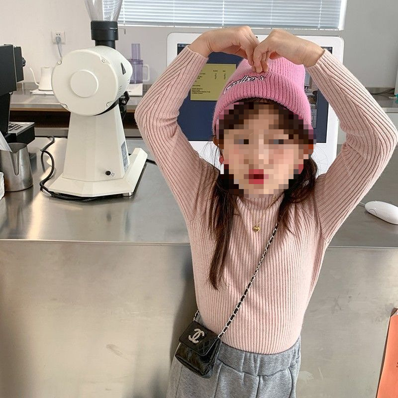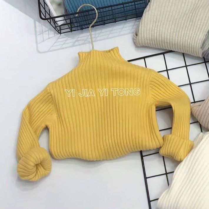 2023 소년과 소녀를위한 새로운 어린이 니트 베이스 셔츠 스웨터 가을과 겨울 한국 스타일 중간 칼라 따뜻한 0158A023