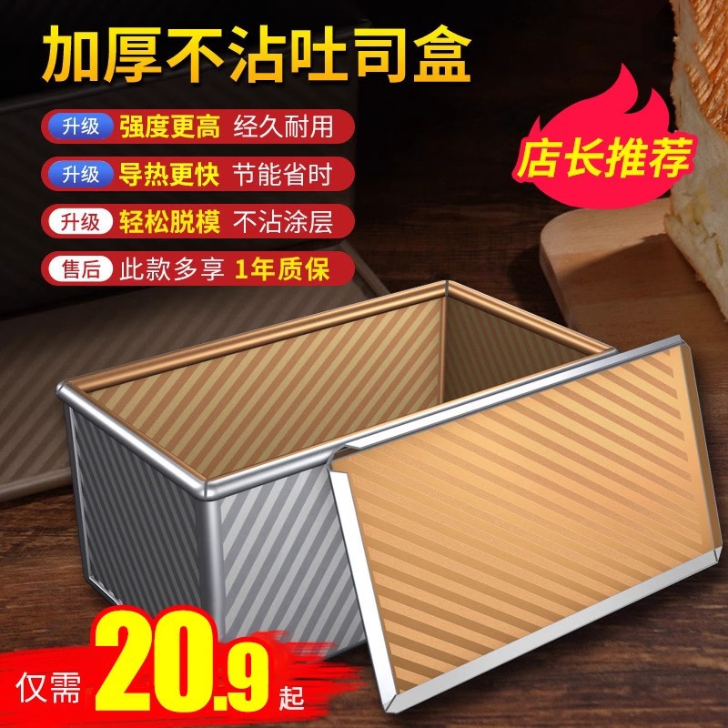 토스트 몰드 450g 뚜껑이있는 붙지 않는 빵 몰드 가정용 베이킹 오븐 베이킹 빵 붙지 않는 토스트 박스스토어 가기