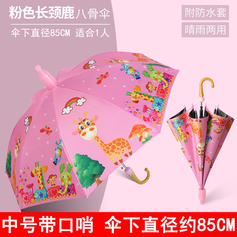 어린이와 학생을위한 맑고 비가 오는 이중 목적 검은 우산 유치원 만화 반자동 방수 케이스 긴 손잡이 써니 우산