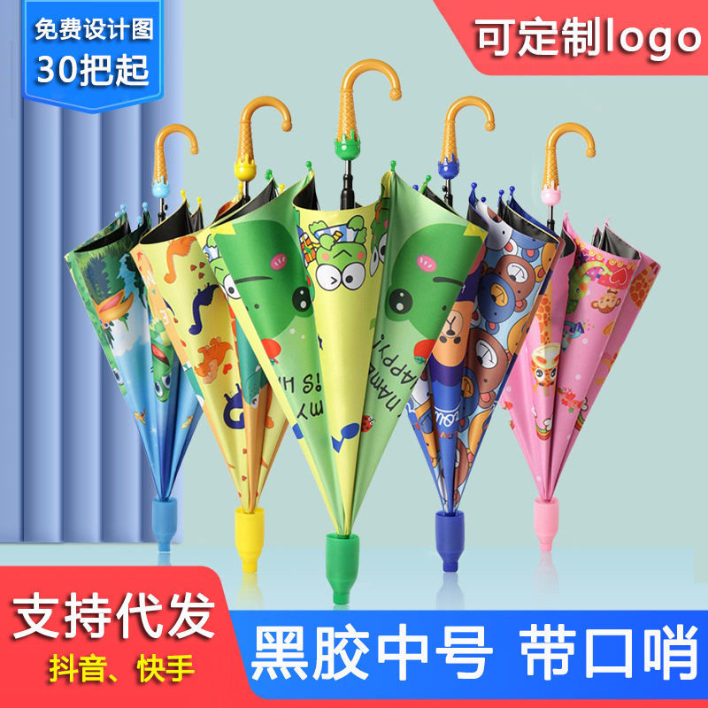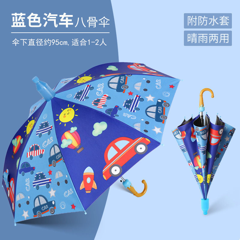어린이와 학생을위한 맑고 비가 오는 이중 목적 검은 우산 유치원 만화 반자동 방수 케이스 긴 손잡이 써니 우산스토어 가기