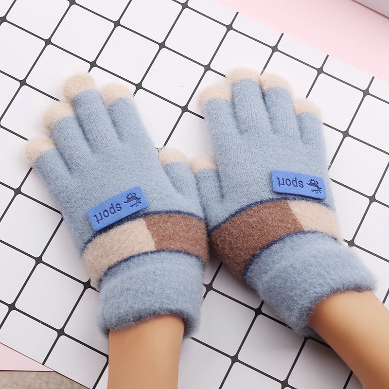 어린이 장갑 새로운 가을과 겨울 기모 두꺼운 따뜻한 아기 귀여운 남자와 여자의 양모 니트 매직 핑거 장갑