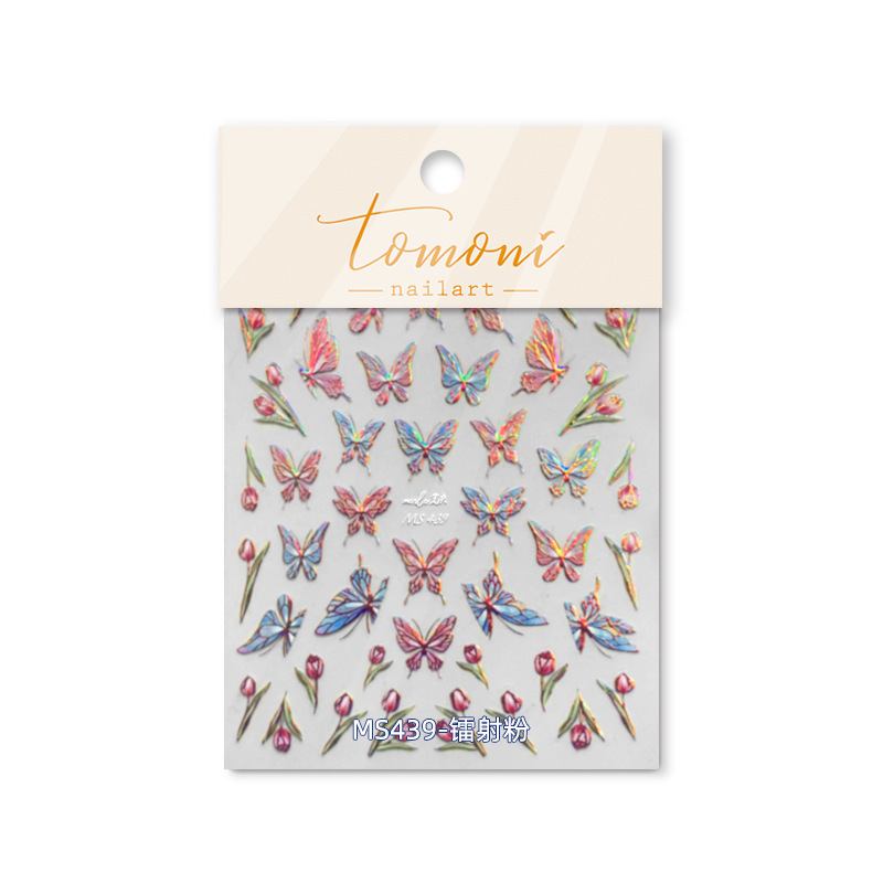 Tomoni 레이저 네일 스티커는 협력을 잃지 않습니다 일본 복고풍 네일 스티커 도매 컬러 나비 MS439스토어 가기