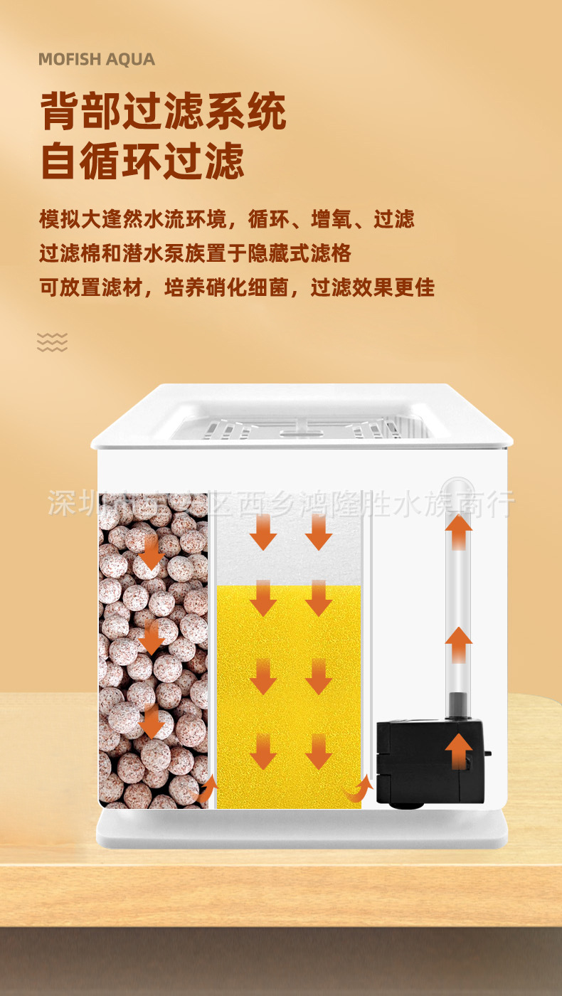 产品特点:背部过滤,外缸一体成型;高清透亮,透光度堪比玻璃超白缸。缸体内部整齐简洁,视觉效果优异;