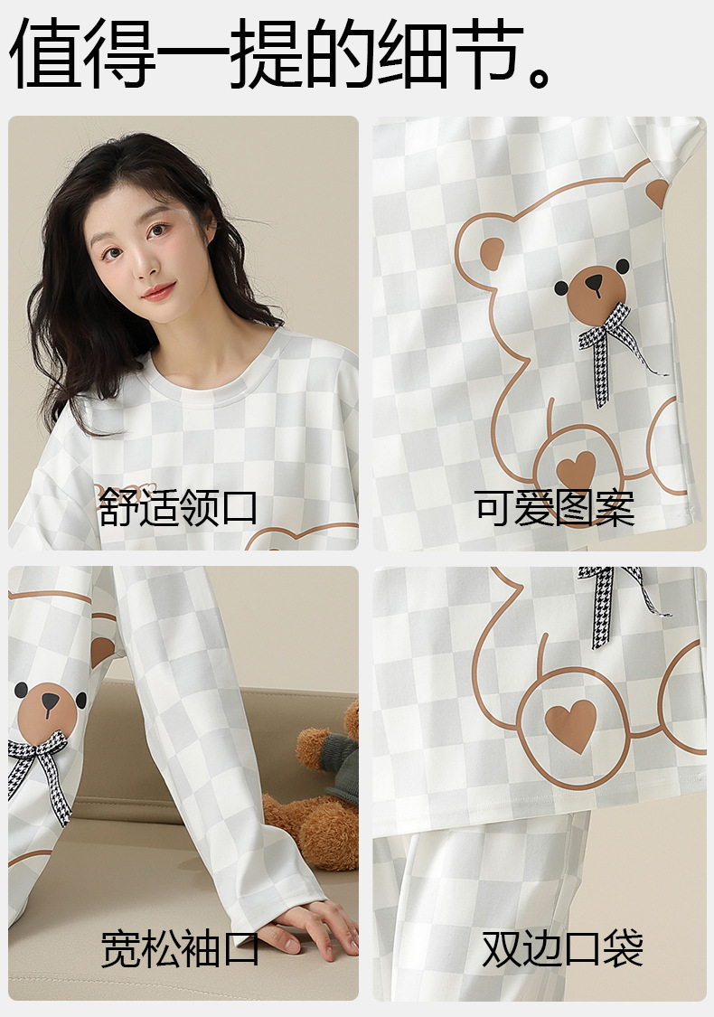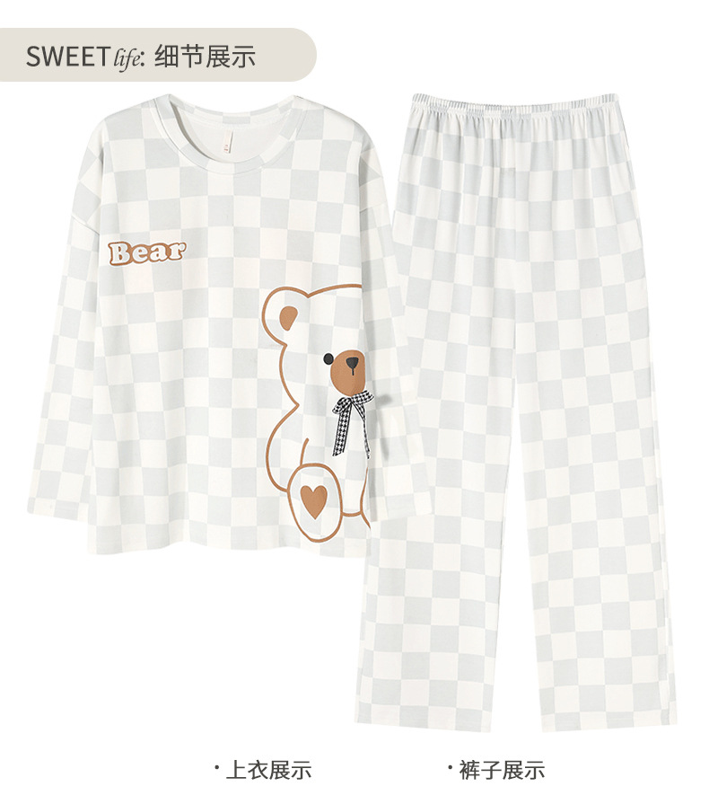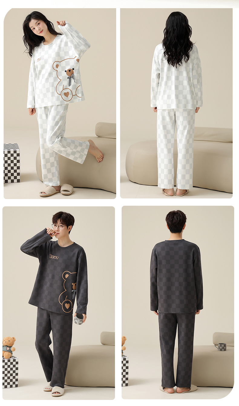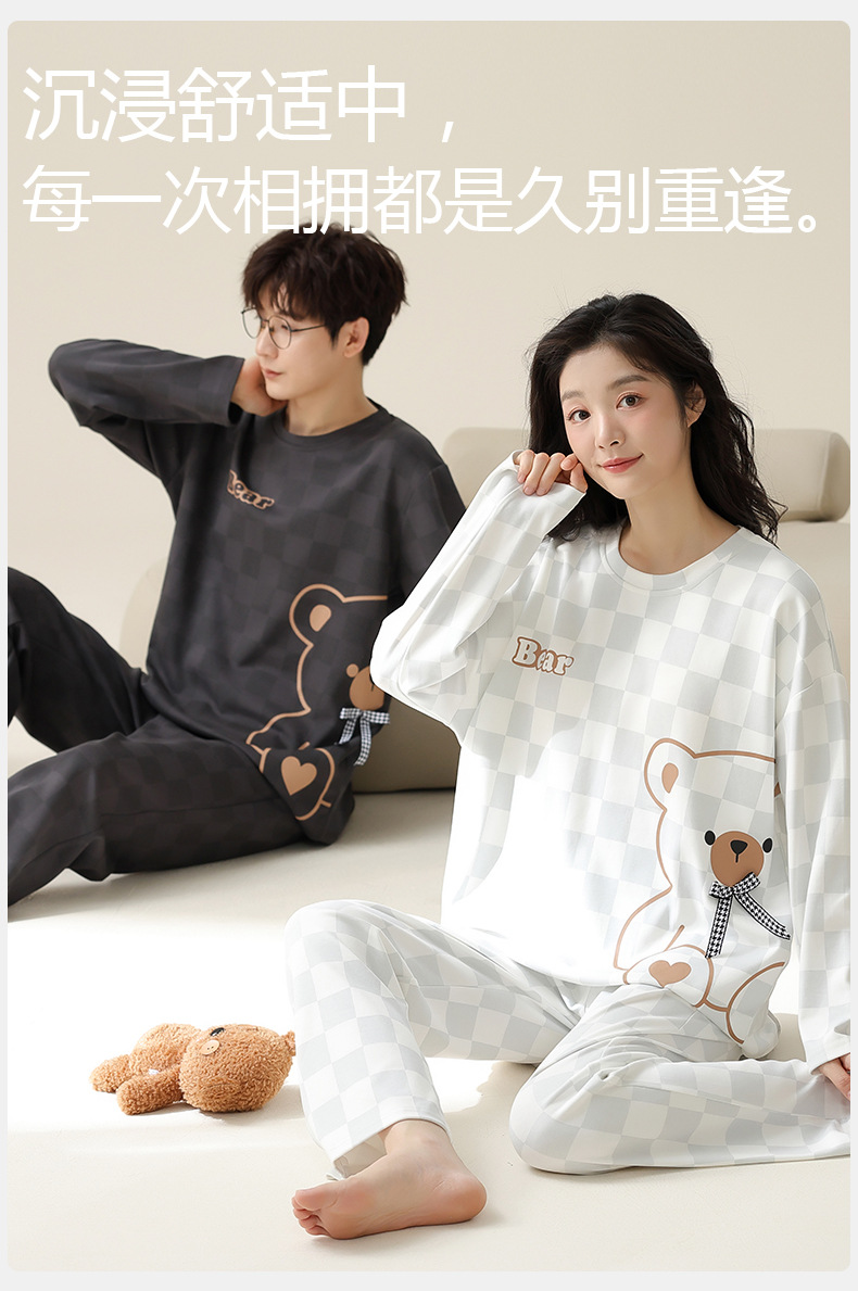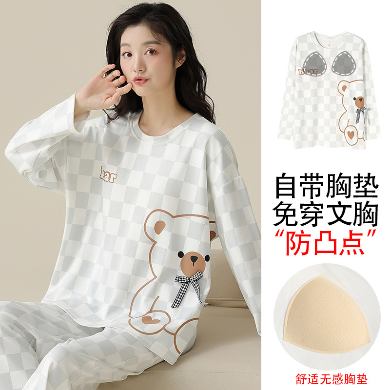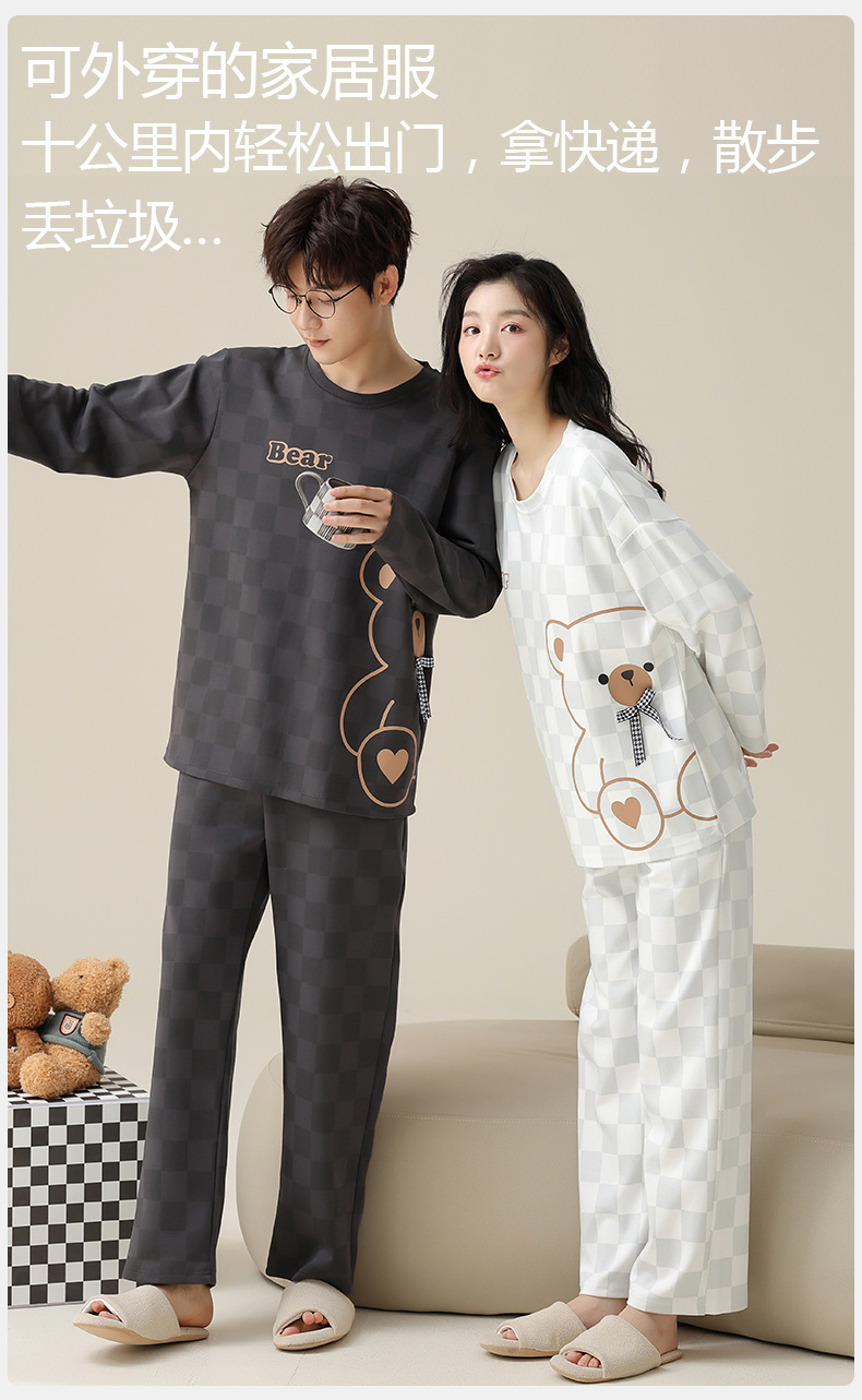 [순면] 커플 잠옷 여성용 가슴 패드 포함 봄 가을 겨울 긴팔 만화 남성용 홈웨어 세트 패션스토어 가기