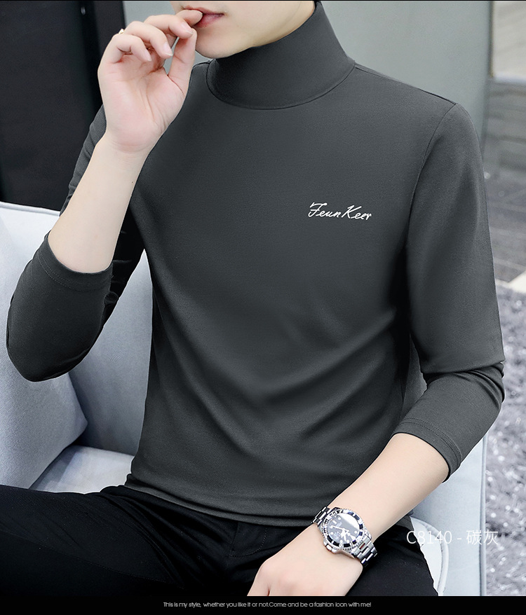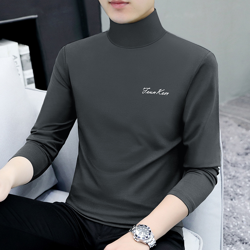 스택 칼라 긴팔 티셔츠 남성 가을과 겨울 트렌드 보텀 셔츠 95 면 가을 의류 하이 칼라 조커 코트 공장 직매스토어 가기