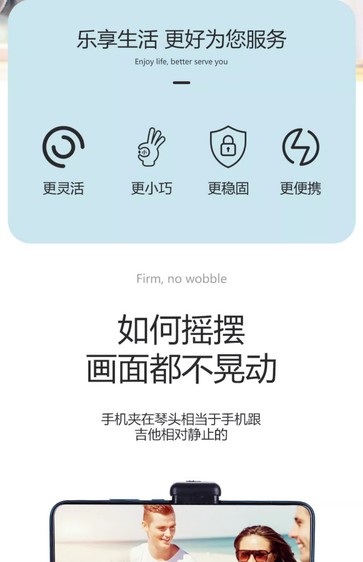기타 라이브 휴대 전화 클립 브래킷 음악 스탠드 헤드 액세서리 침대 옆 휴대 전화 클립 데스크탑 우쿨렐레 촬영 비디오 클립스토어 가기
