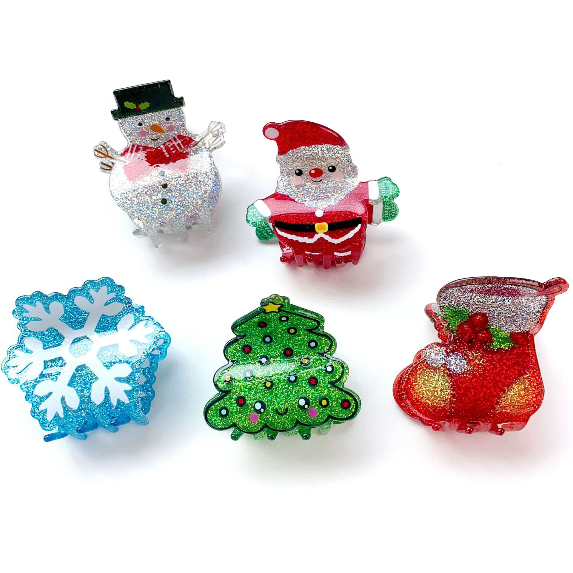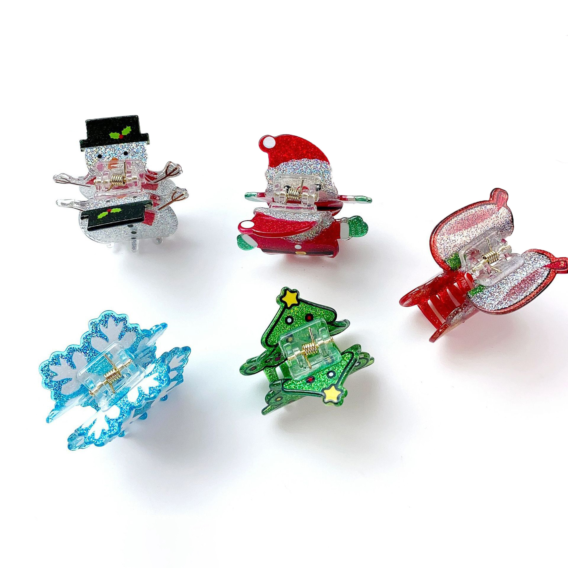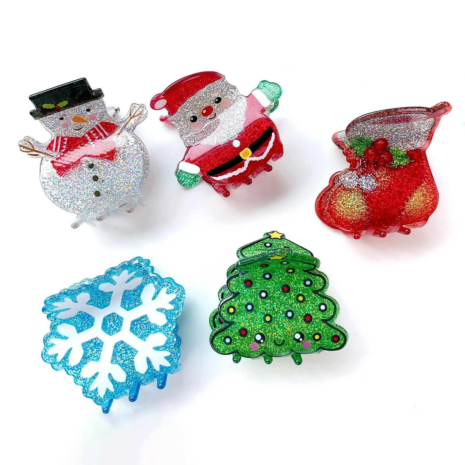 2023 새로운 아세트산 산타 클로스 작은 그랩 클립 크로스 보더 눈사람 양말 머리핀 크리스마스 트리 눈송이 모자 도매