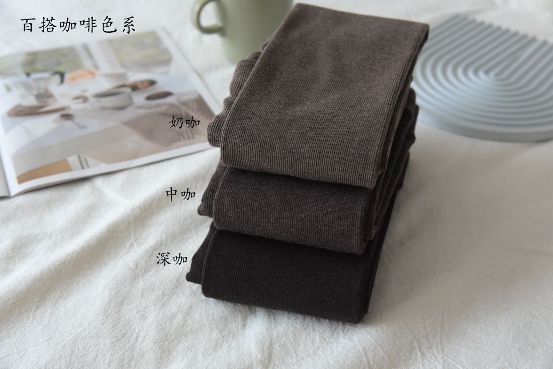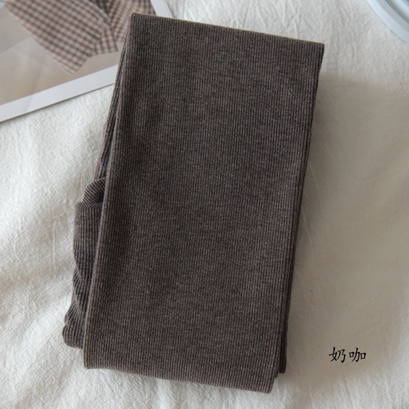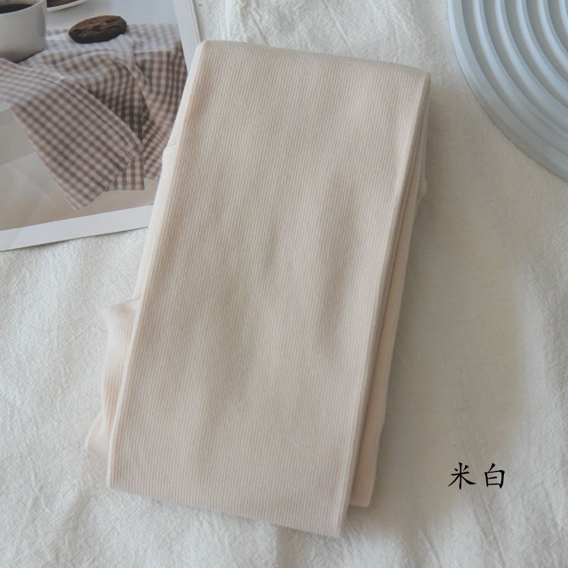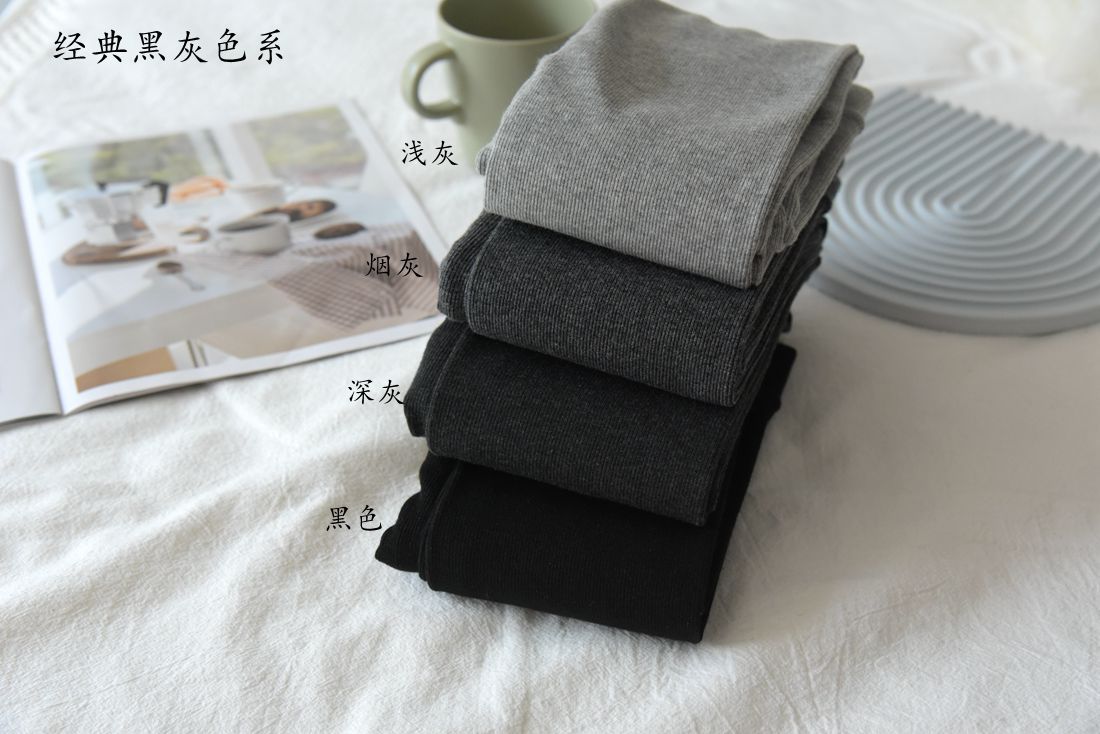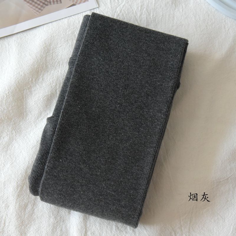 일본식 흰색 면 세로 줄무늬 레깅스 여성용 가을과 겨울 실 회색 슬림핏 발 기모 바지 밀크 화이트 팬티 스타킹