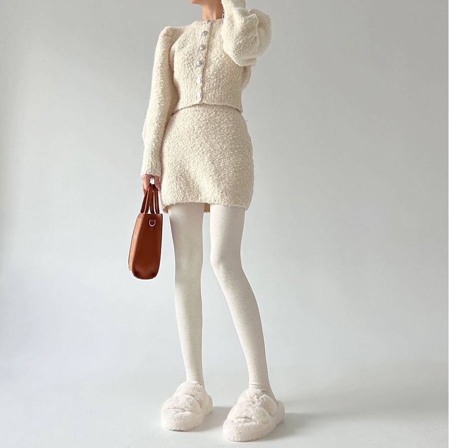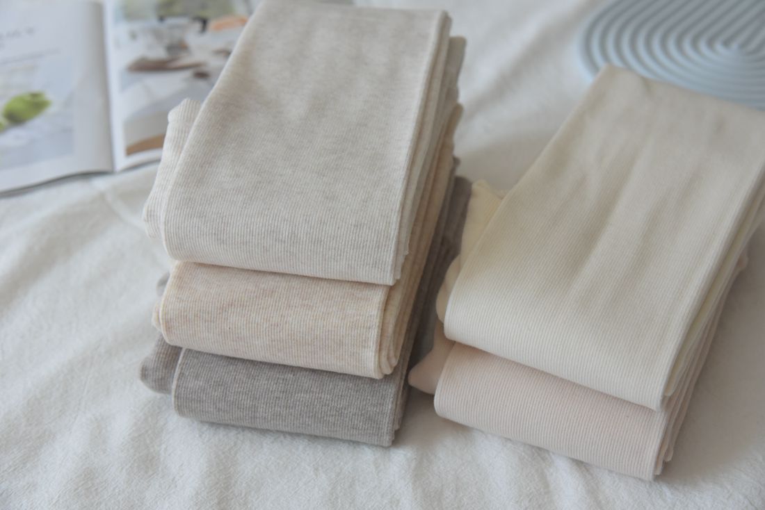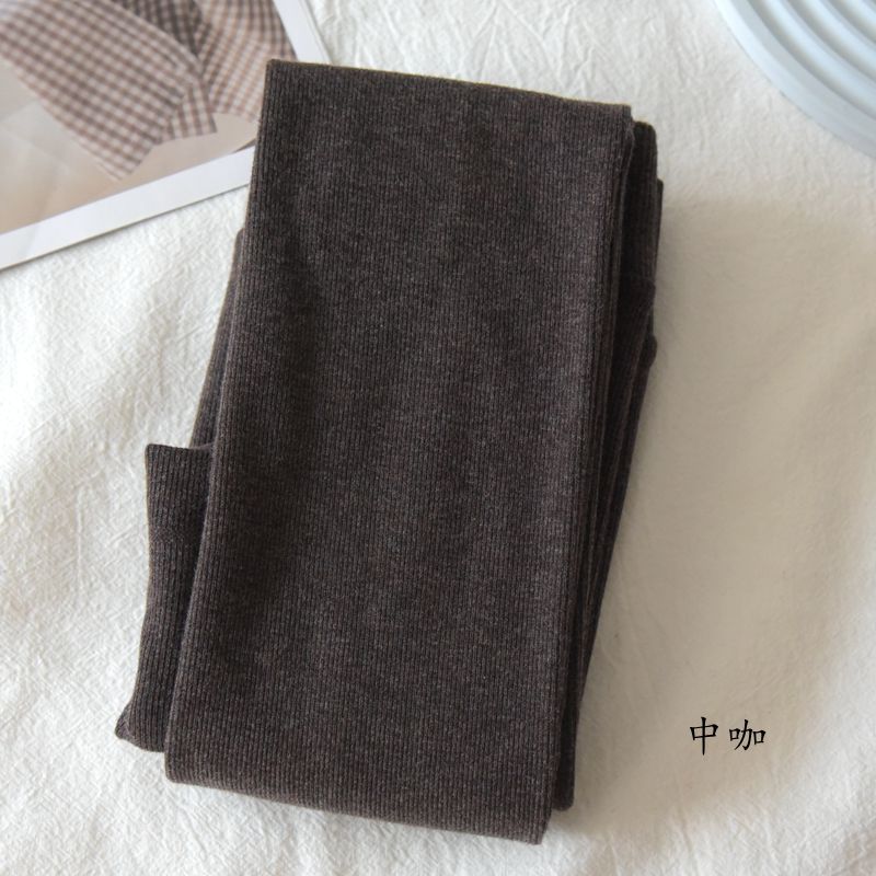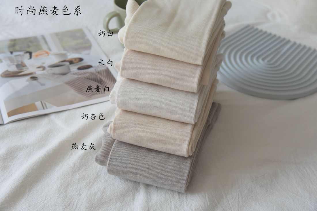 일본식 흰색 면 세로 줄무늬 레깅스 여성용 가을과 겨울 실 회색 슬림핏 발 기모 바지 밀크 화이트 팬티 스타킹