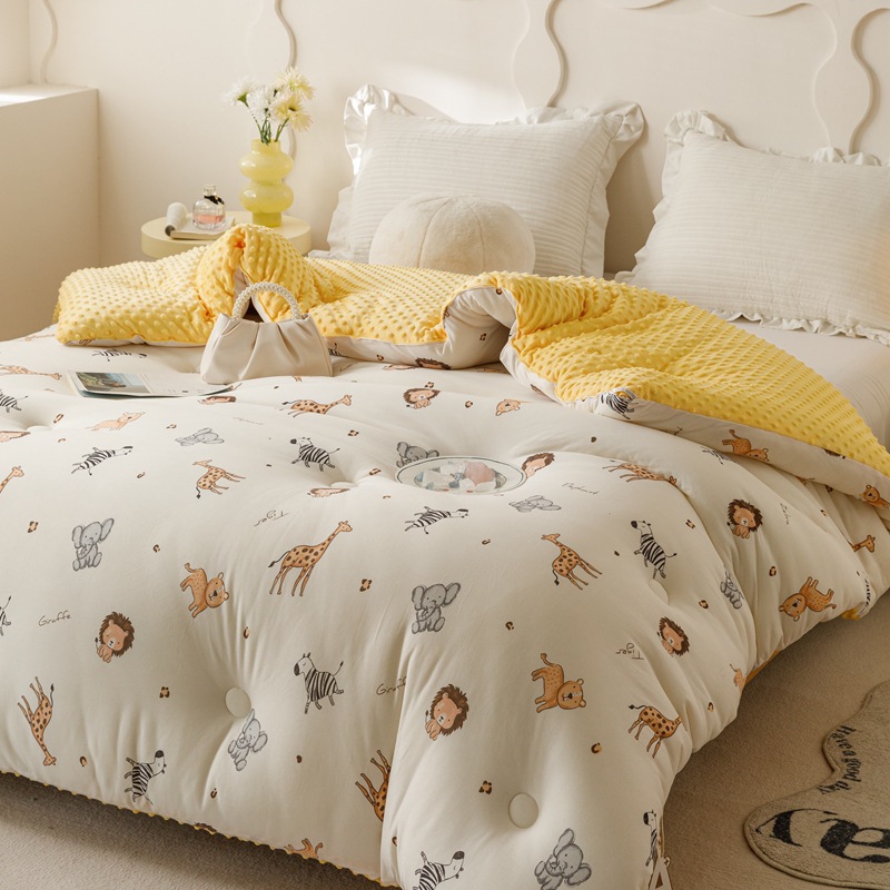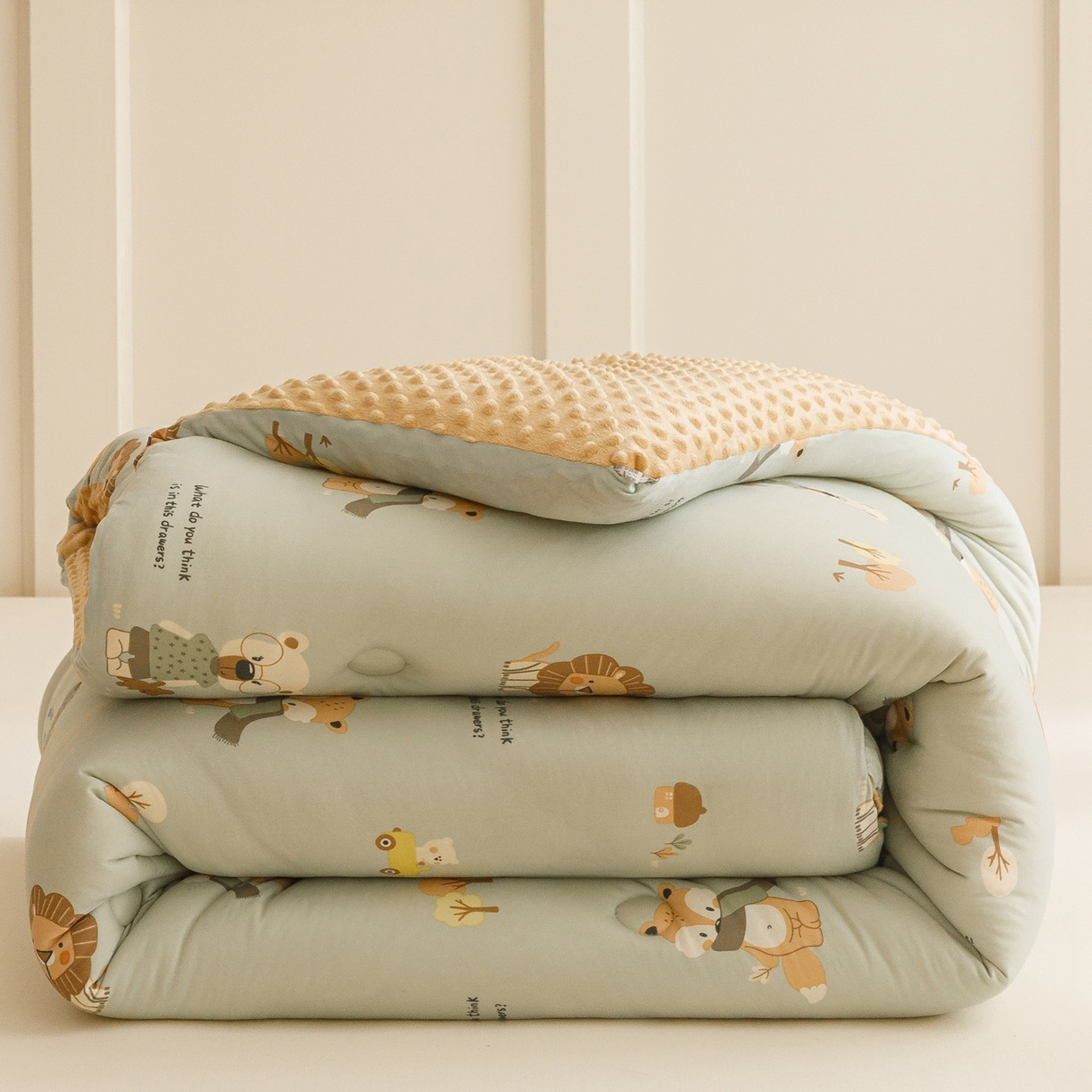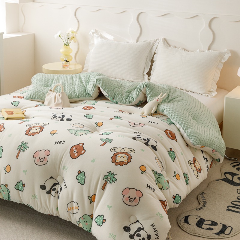 2024 니트 코튼 콩 이불 코어 엄마와 아이 따뜻한 겨울 이불 더블 싱글 두꺼운 만화 이불