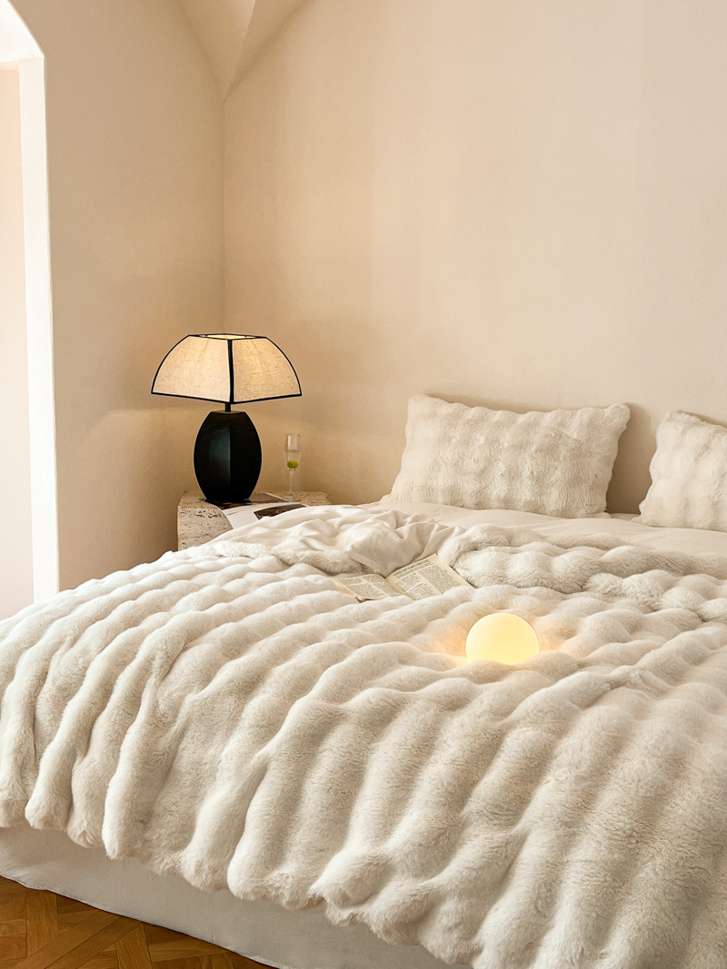 토끼 담요 인조 모피 담요 버블 벨벳 더블 레이어 두꺼운 북유럽 캐주얼 소파 담요 렉스 토끼 모피스토어 가기