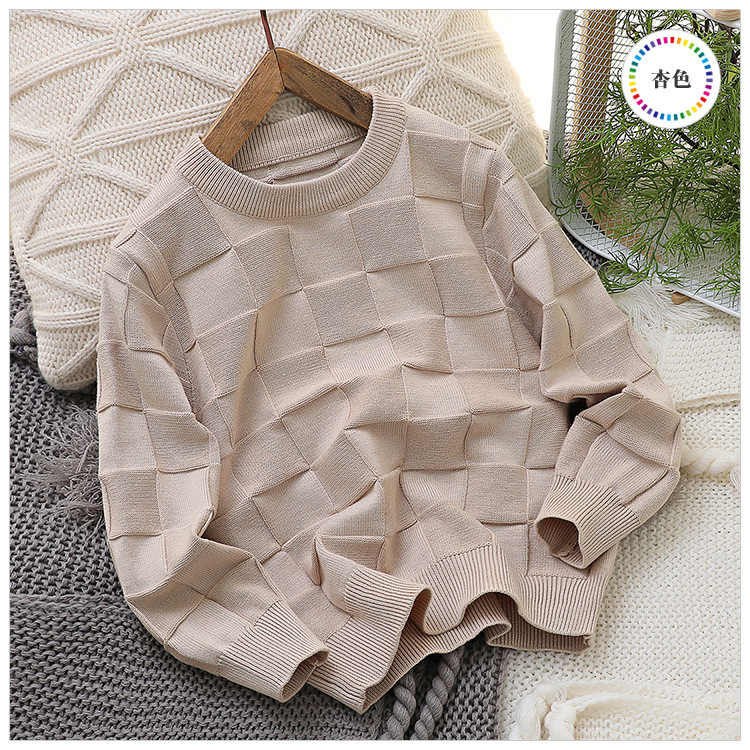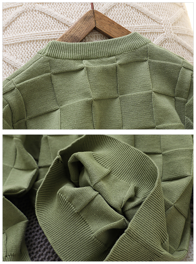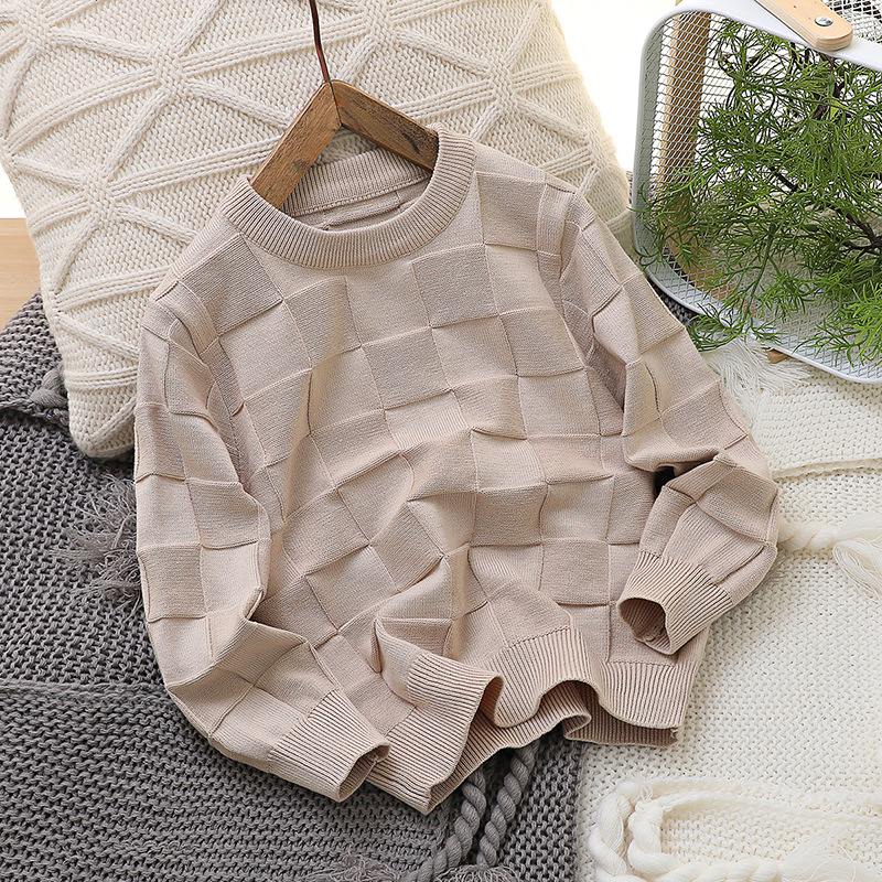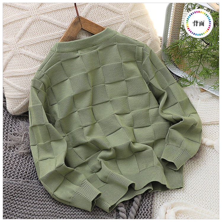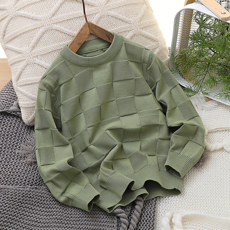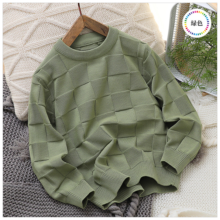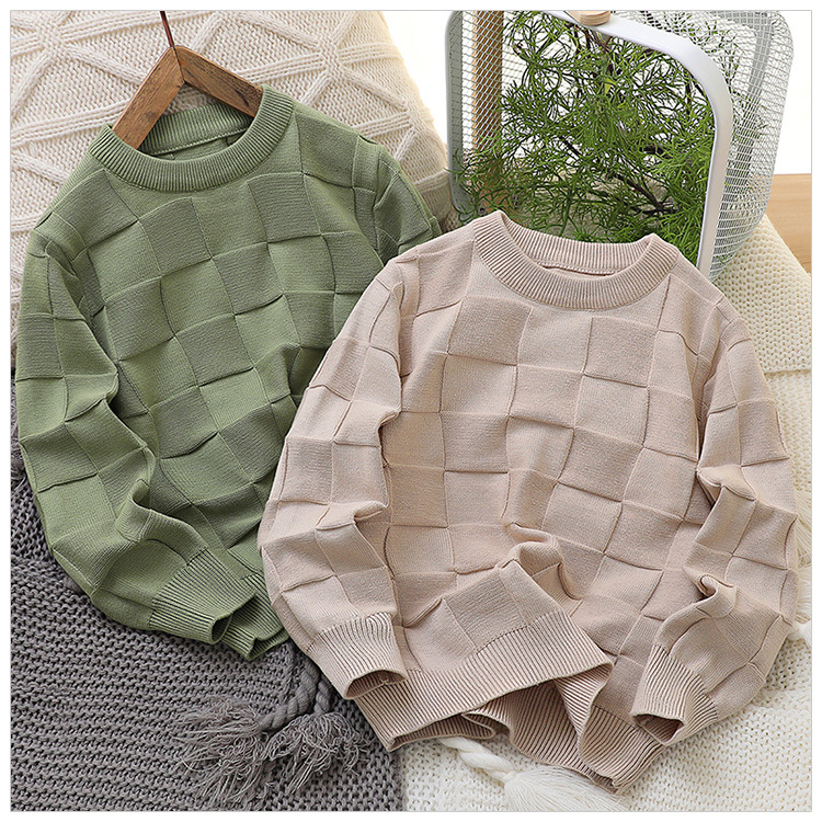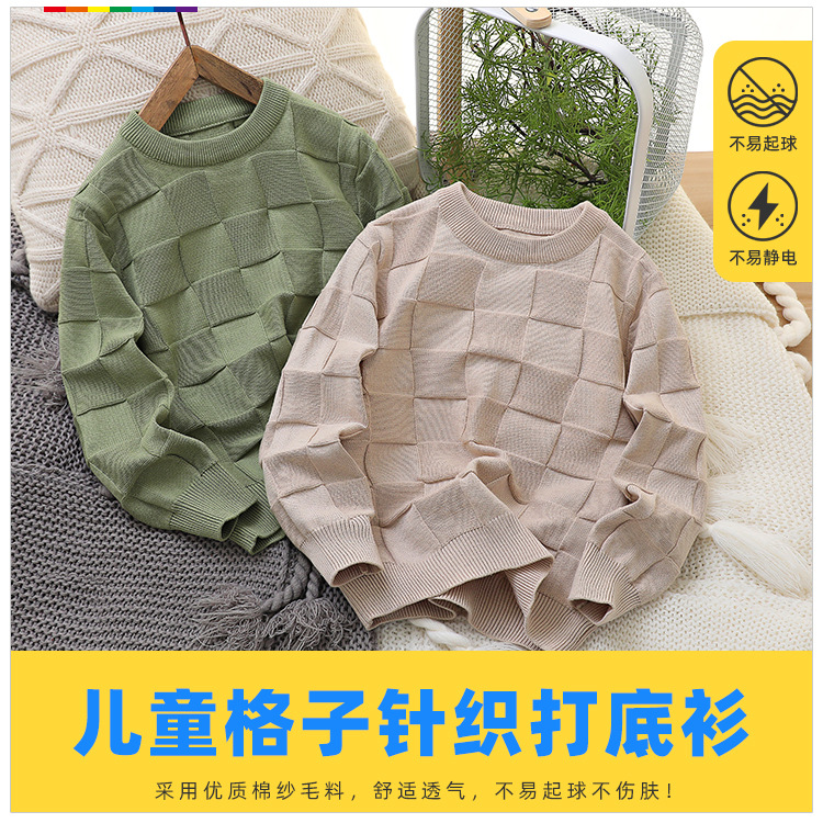 2023 새로운 아동 스웨터 가을 얇은 단색 외국 스타일 라운드 넥 면사 중형 및 대형 아동 의류 기본 스웨터스토어 가기