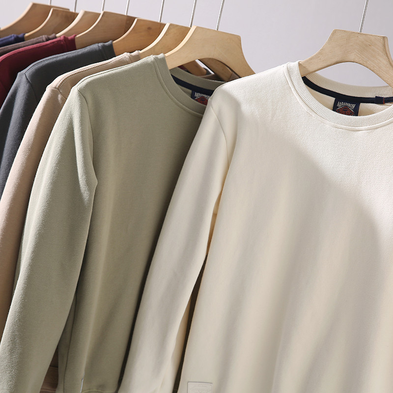 봉제 신장 면화! 겨울 샌딩 기모 라운드 넥 스웨터 남자의 간단한 단색 캐주얼 두꺼운 풀오버 탑
