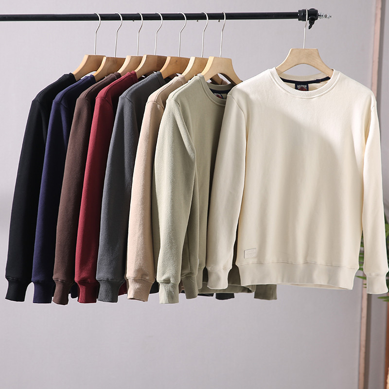 봉제 신장 면화! 겨울 샌딩 기모 라운드 넥 스웨터 남자의 간단한 단색 캐주얼 두꺼운 풀오버 탑스토어 가기