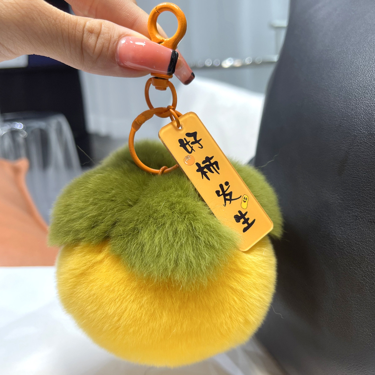 렉스 토끼 모피 작은 감 자동차 키 체인 펜던트 귀여운 봉제 공 책가방 장식품 생일 선물