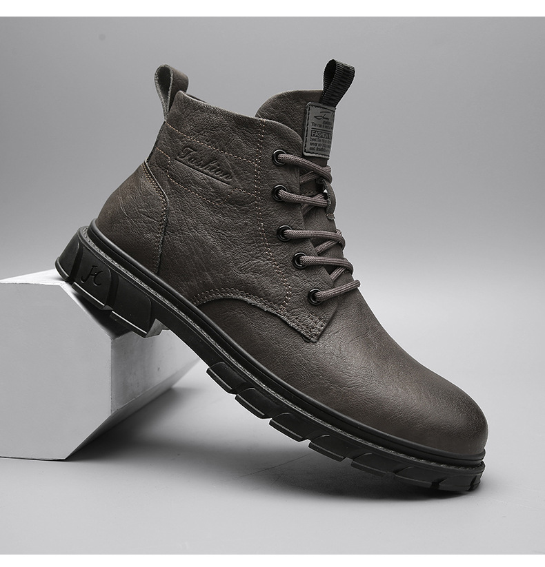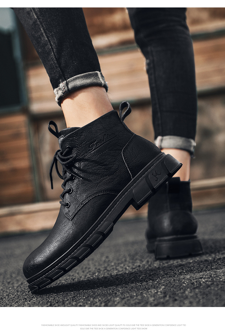 가을과 겨울 새로운 기모 마틴 부츠 남성 캐주얼 스포츠 높이 증가 영국 스타일 짧은 부츠 가죽 방풍 따뜻한 남성 신발