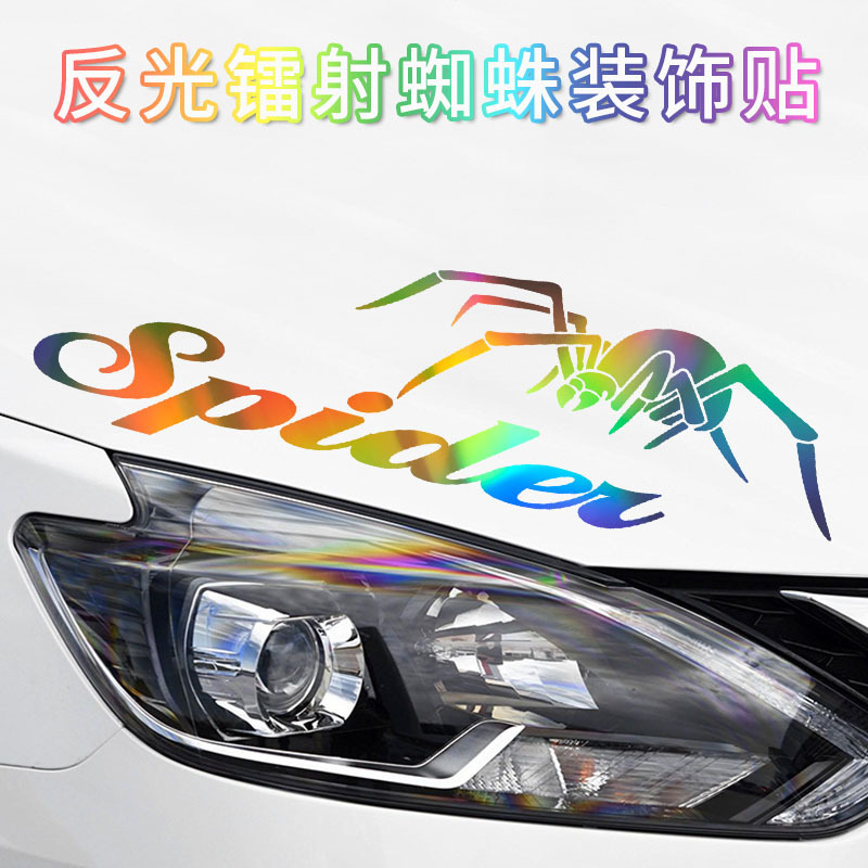국경 다채로운 레이저 거미 자동차 스티커 스크래치 커버 스티커 라이트 눈썹 자동차 스티커 개인화 된 창조적 인 장식 자동차스토어 가기