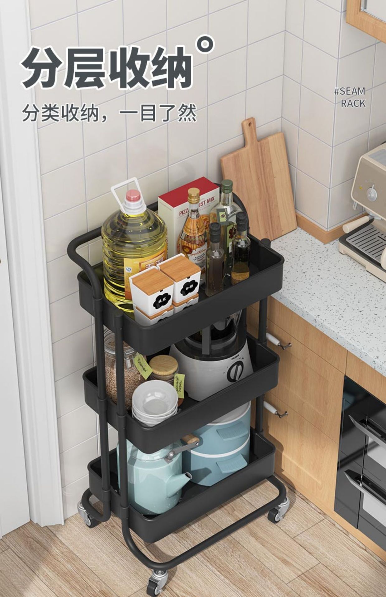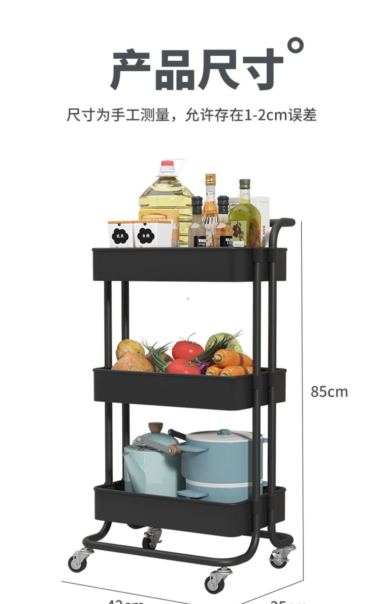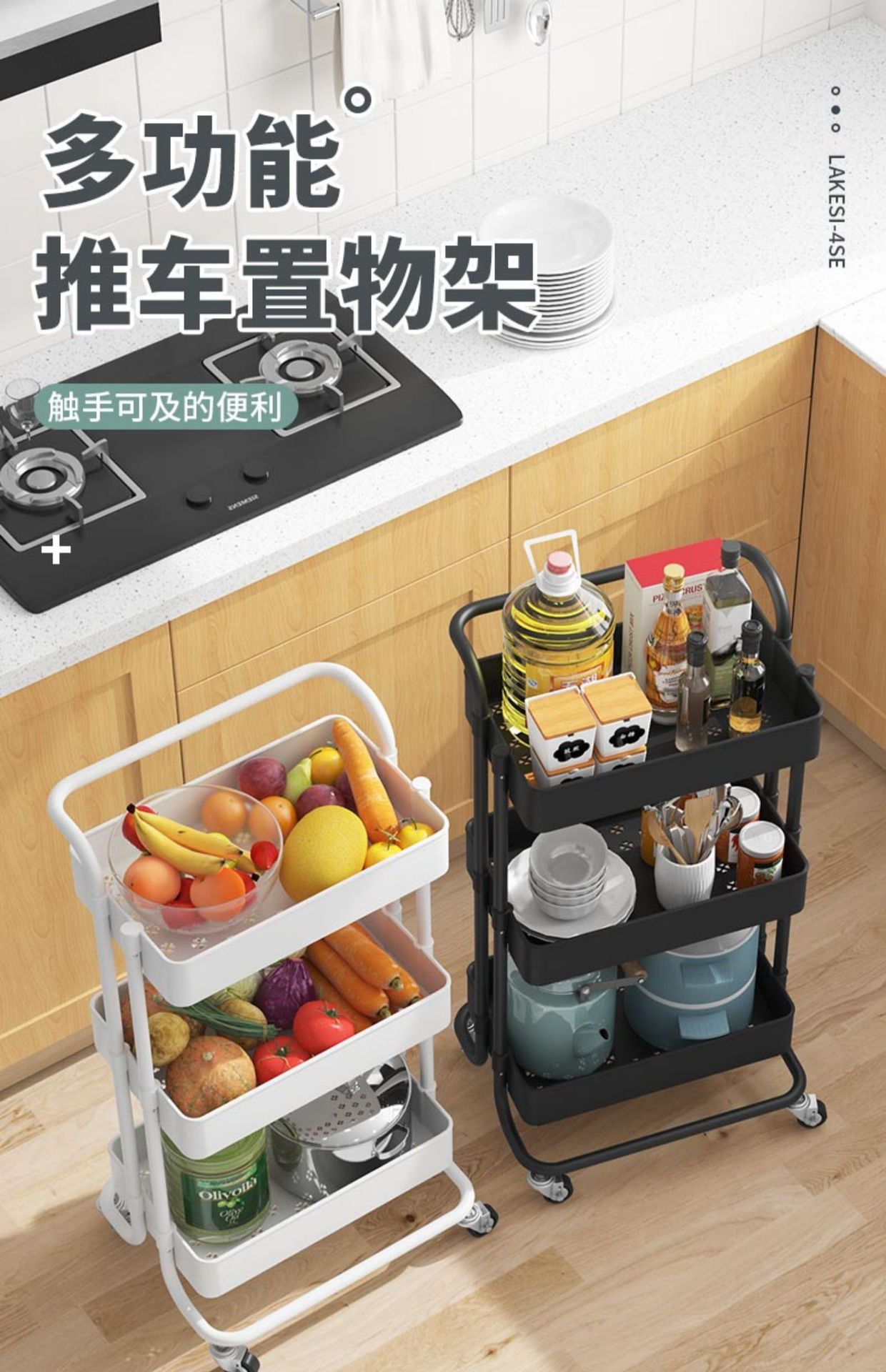 이동식 카트 주방 수납 랙 바닥 다층 야채 바구니 가정용 수납 랙스토어 가기