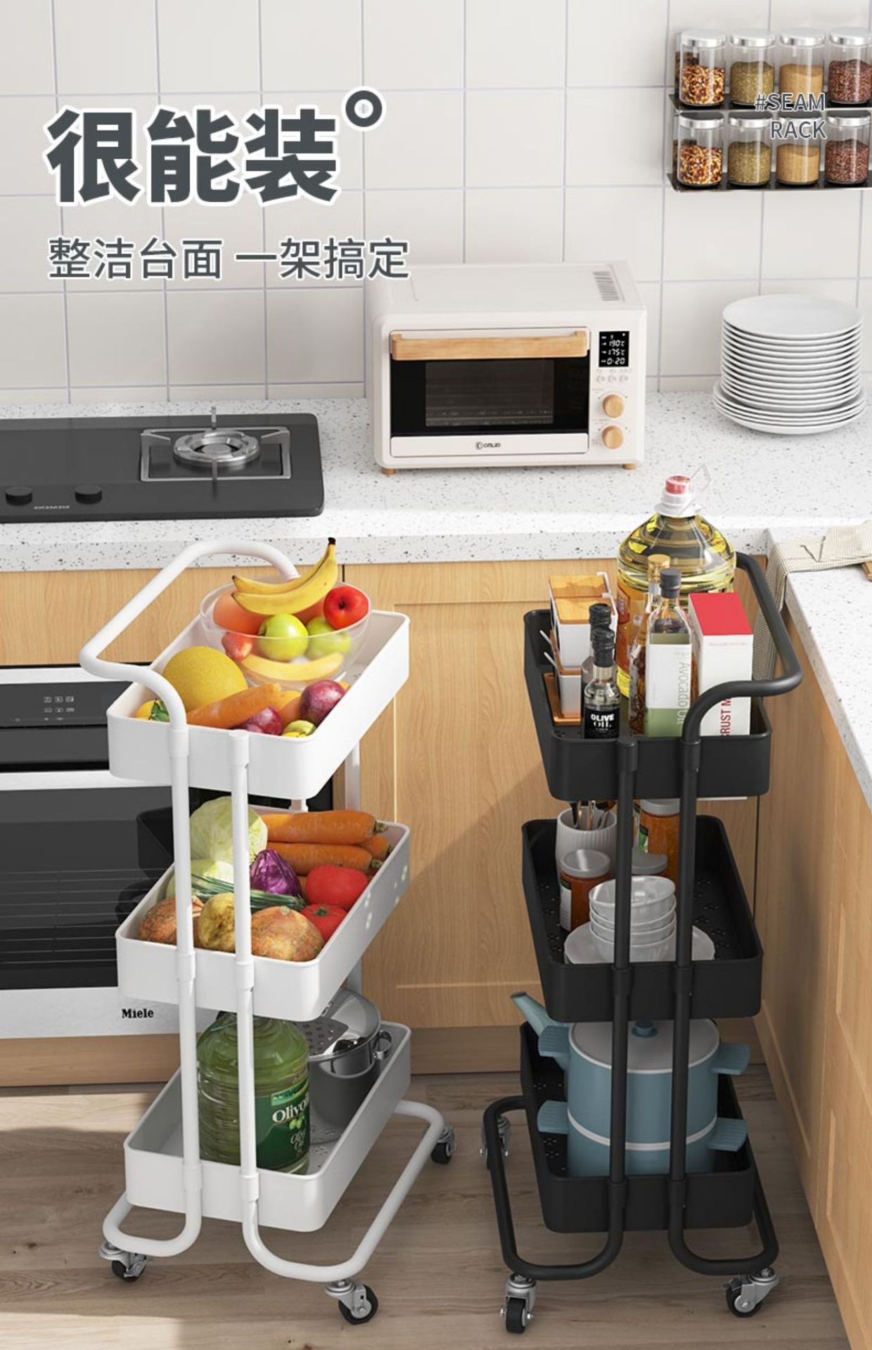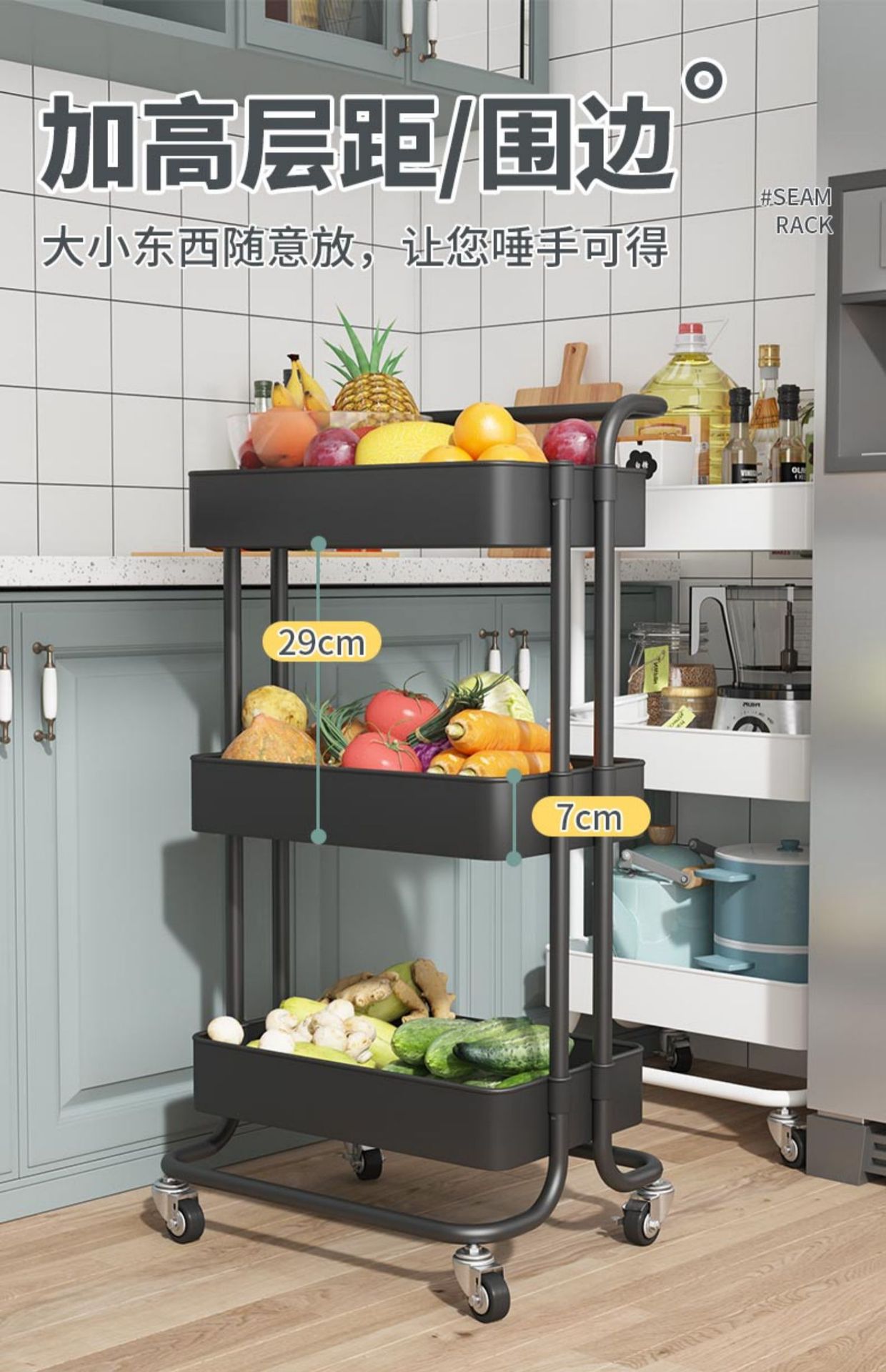 이동식 카트 주방 수납 랙 바닥 다층 야채 바구니 가정용 수납 랙