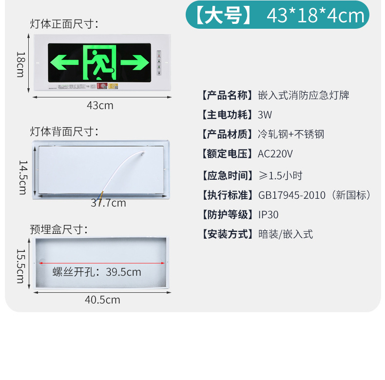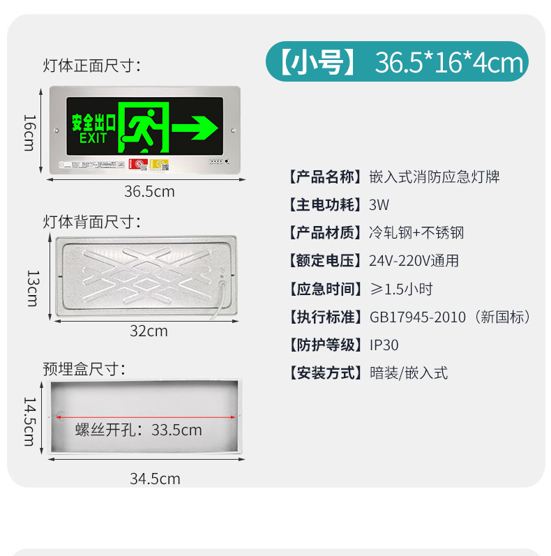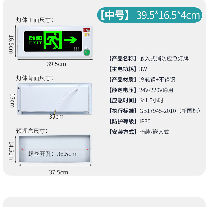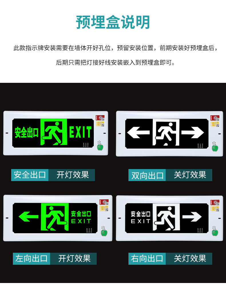 매입 안전 출구 표지판 LED 피난 계단 통로 화재 비상등 표시 표시