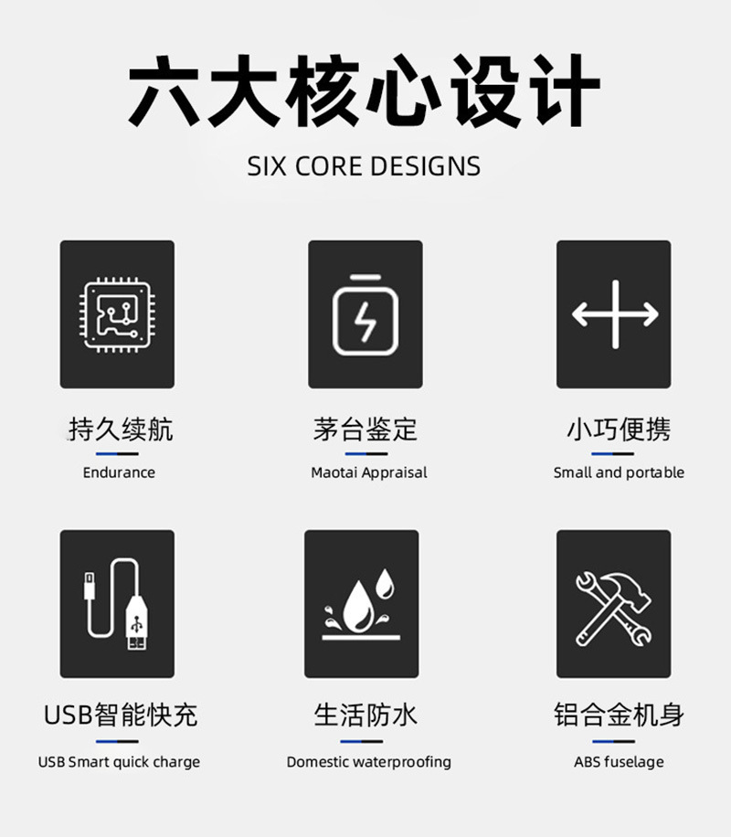 마오타이 술 회수 알루미늄 합금 서치라이트별 술 식별 램프 6 램프 P50 강력 조명 손전등 충전 술 검사 램프