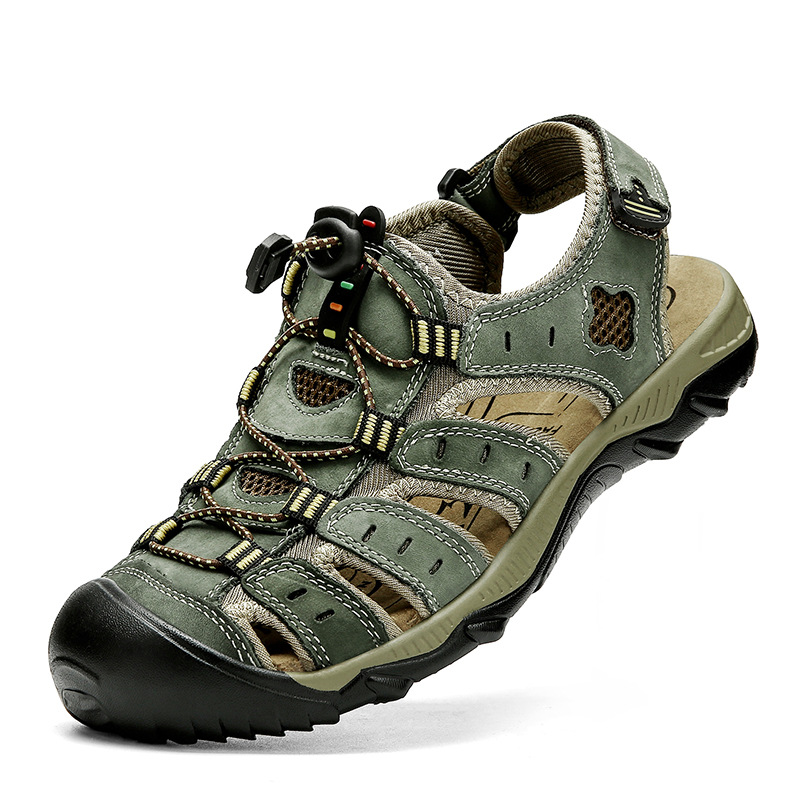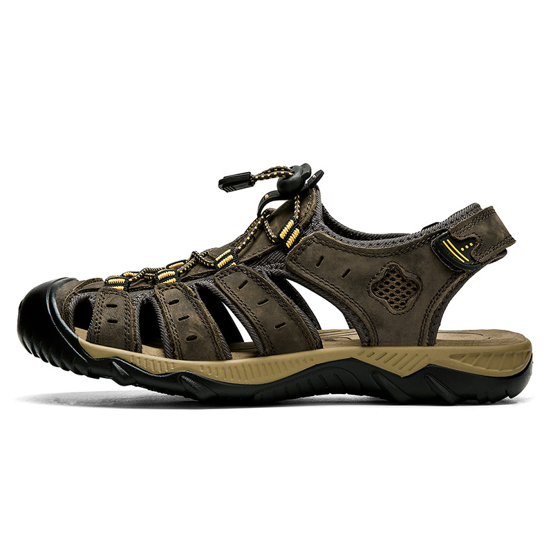 크로스 보더 울트라 라이트 남성 샌들 정품 가죽 발가락 비치 샌들 레트로 여름 소가죽 샌들 남성용 야외 샌들