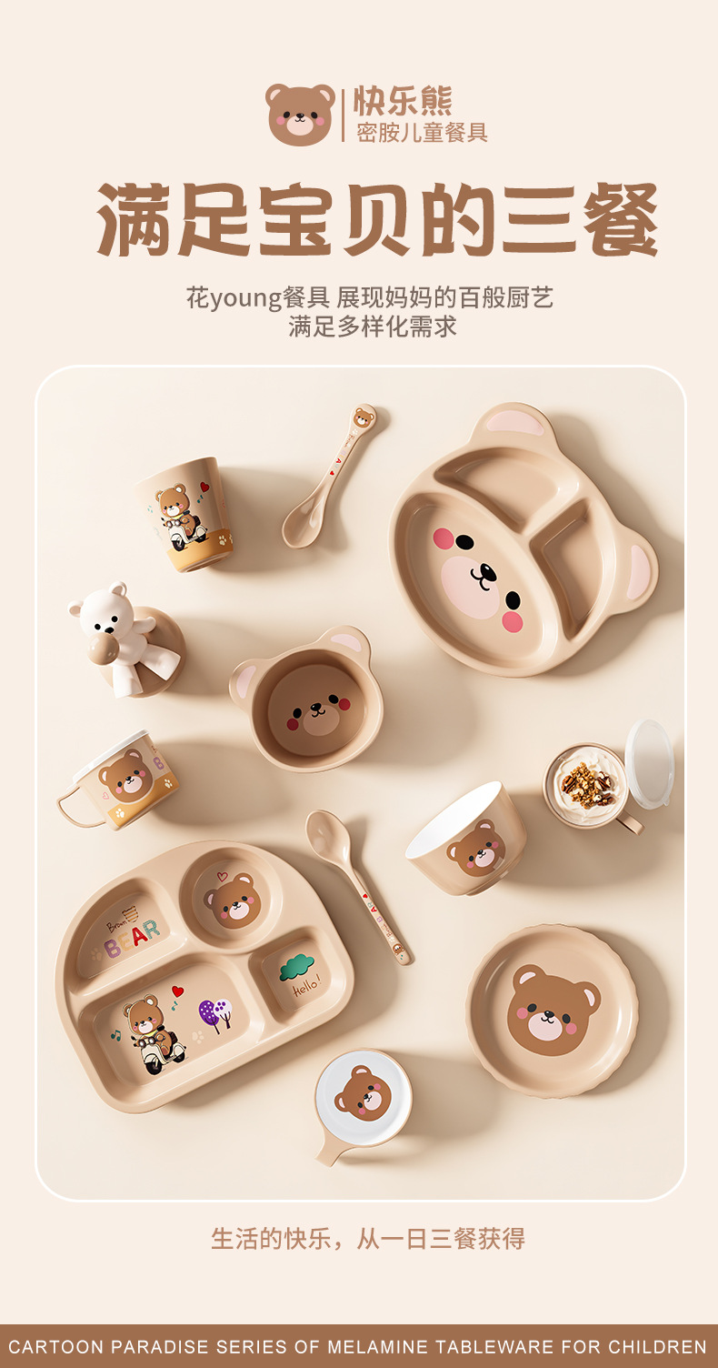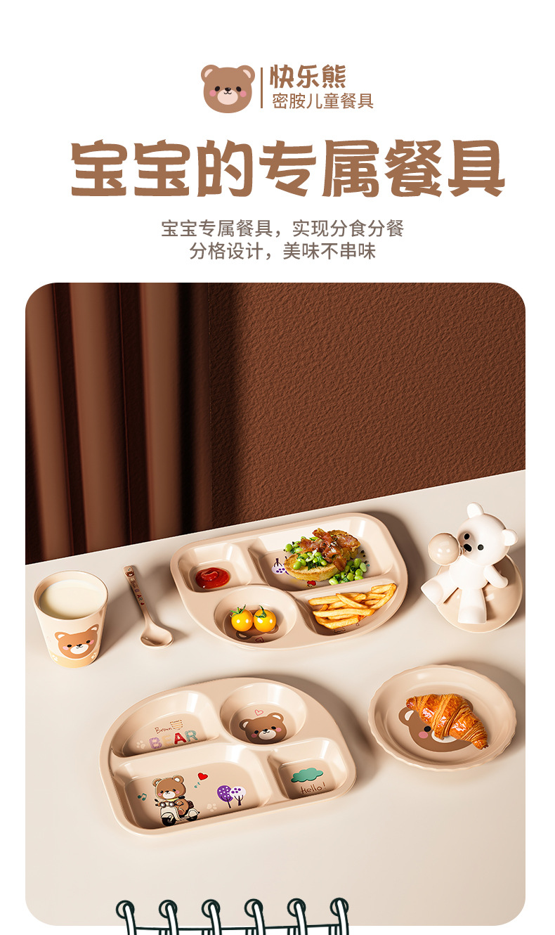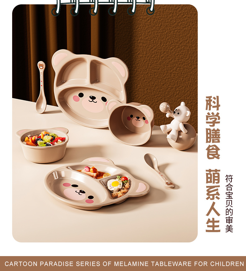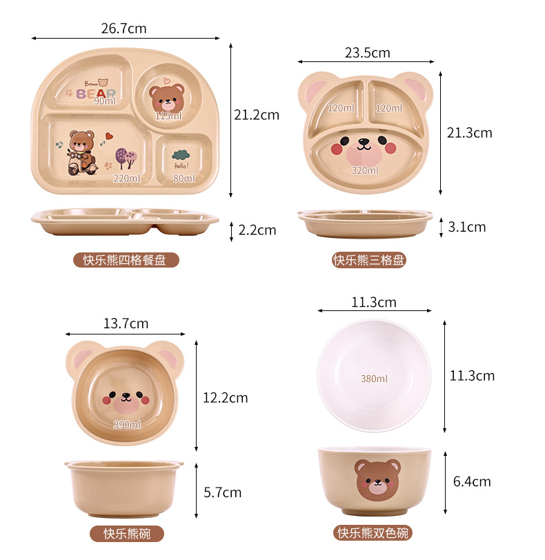 작은 곰돌이 아기 식판 어린이 식기 분할 접시 보조식품 그릇 아이들 물컵 내구성 식품 등급