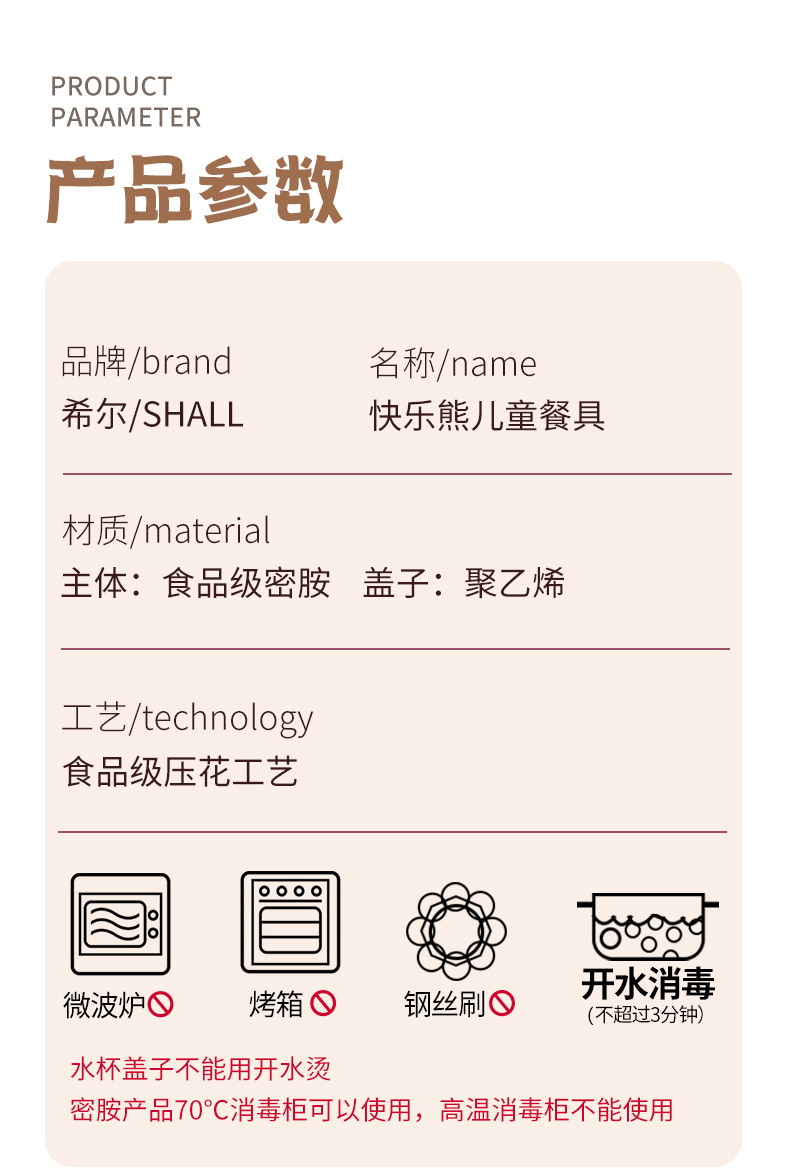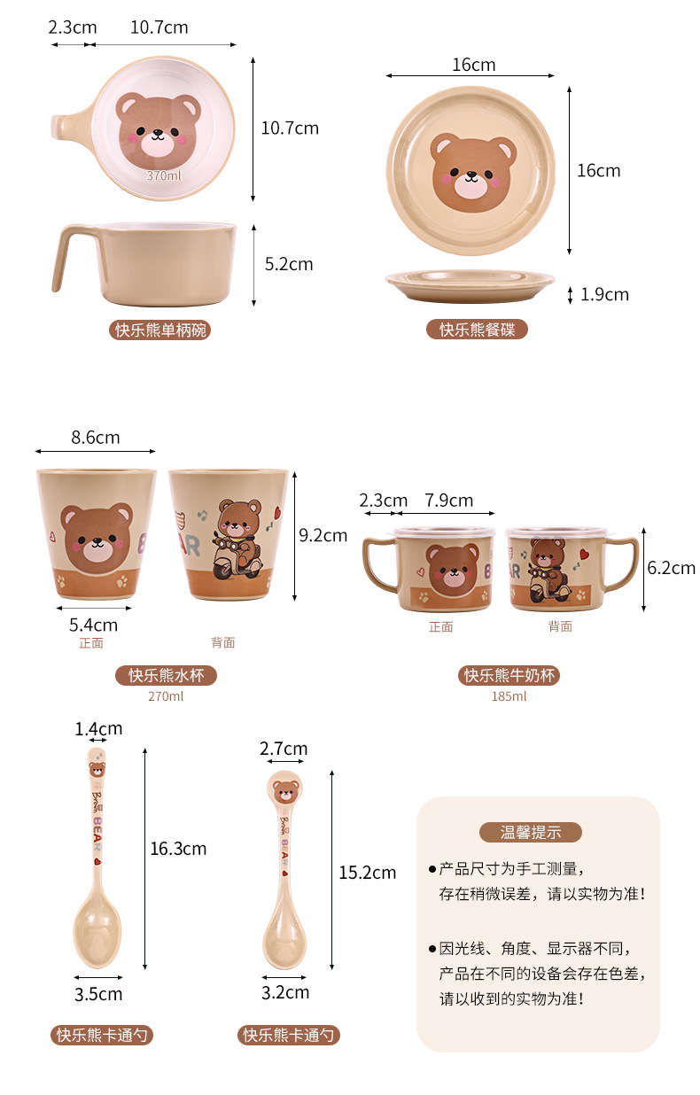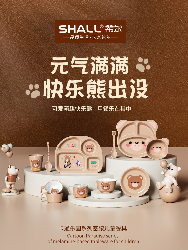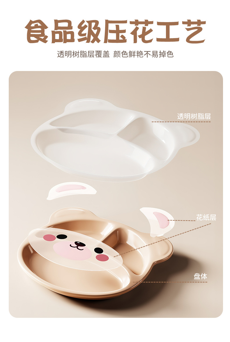 작은 곰돌이 아기 식판 어린이 식기 분할 접시 보조식품 그릇 아이들 물컵 내구성 식품 등급