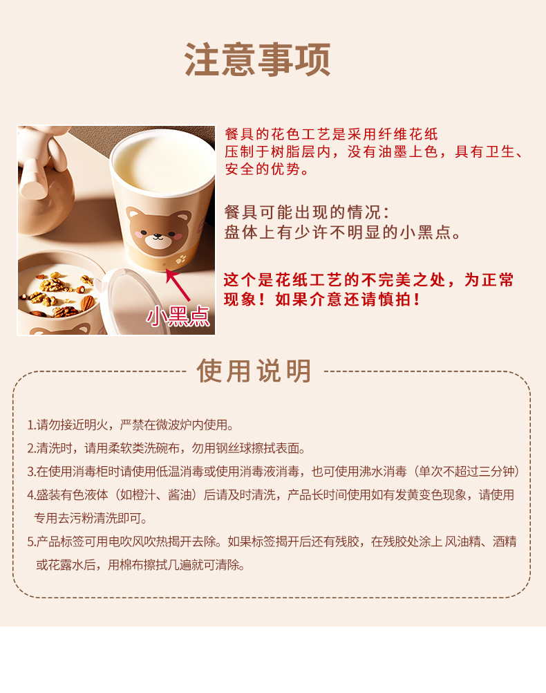 작은 곰돌이 아기 식판 어린이 식기 분할 접시 보조식품 그릇 아이들 물컵 내구성 식품 등급스토어 가기