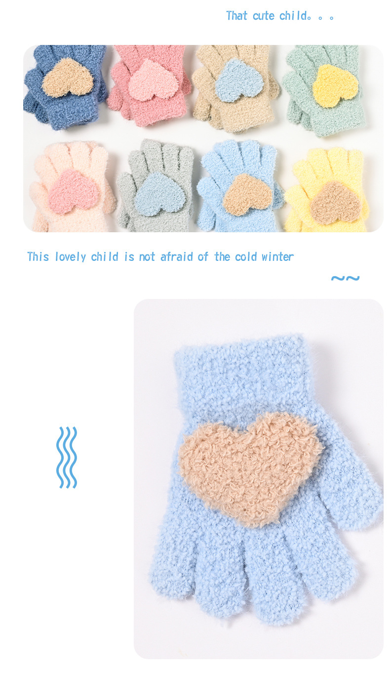 새로운 사랑스러운 모직 가을 겨울 어린이 장갑 니트 다섯 손가락 보온 두꺼운 아기 유아 중소 어린이용