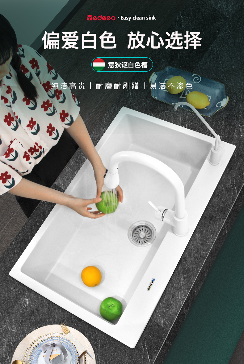 Yiddiou 석영 돌 싱크대 대형 싱글 싱크 화강암 주방 싱크 언더 카운터 싱크 싱크 화이트 7076