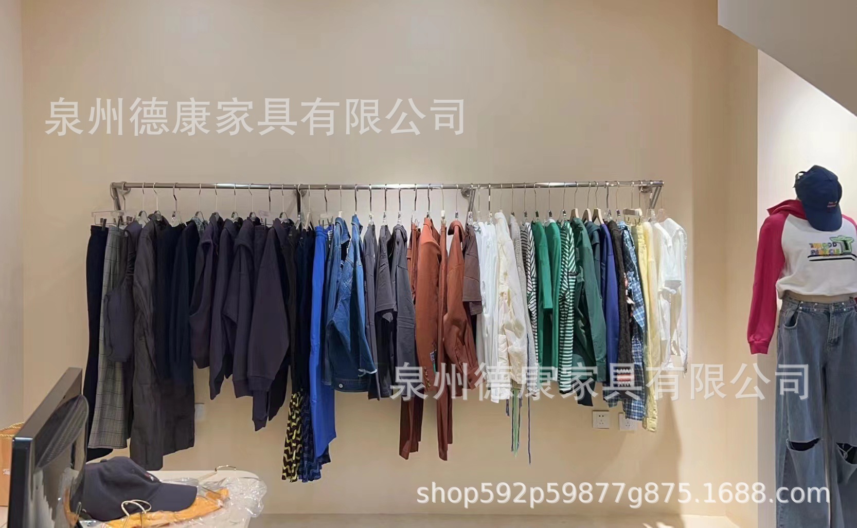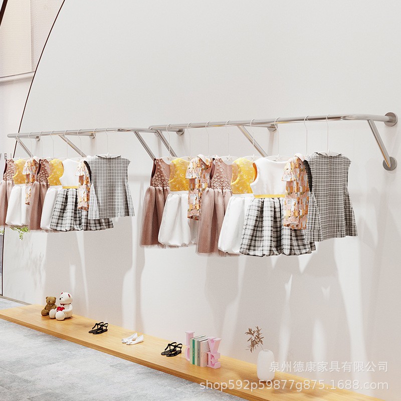 의류 매장 디스플레이 랙 벽 걸이 여성 의류 매장 측면 교수형 의류 랙 어린이 의류 벽걸이 선반 벽걸이