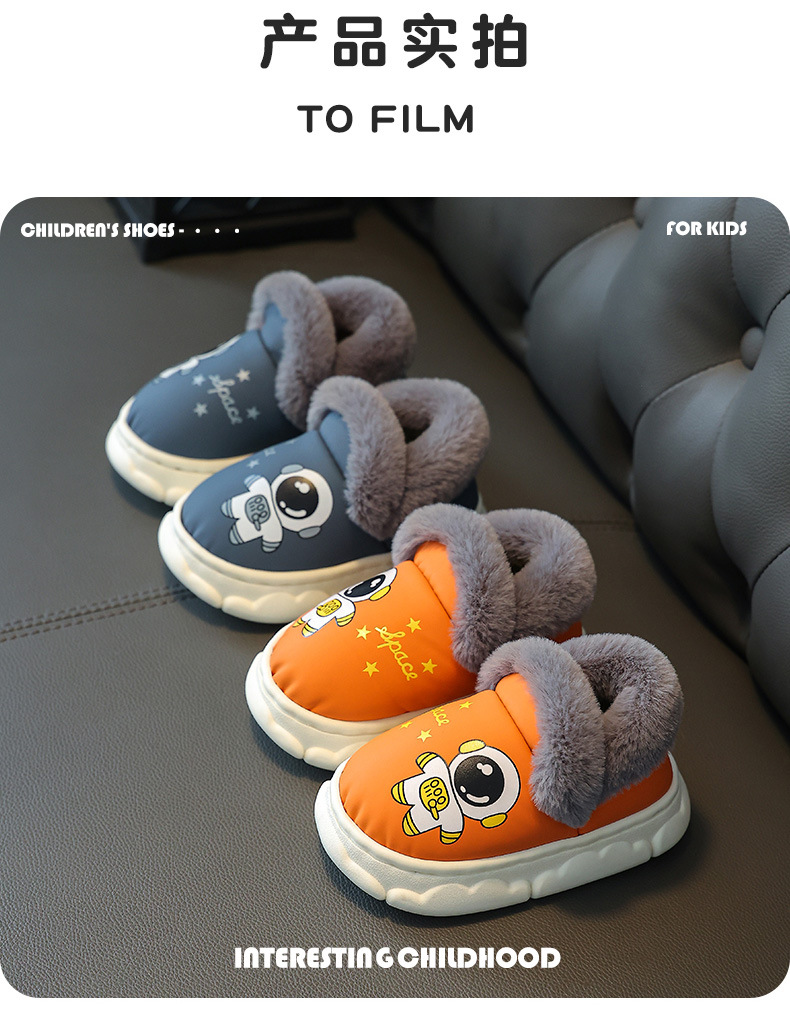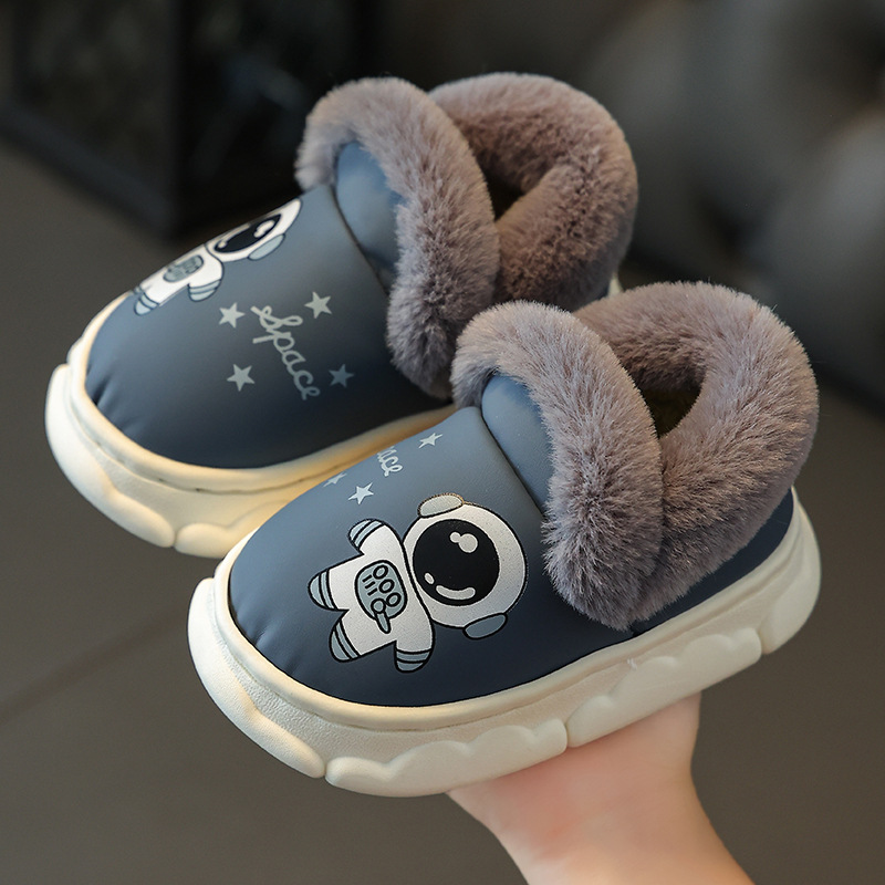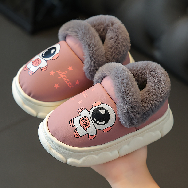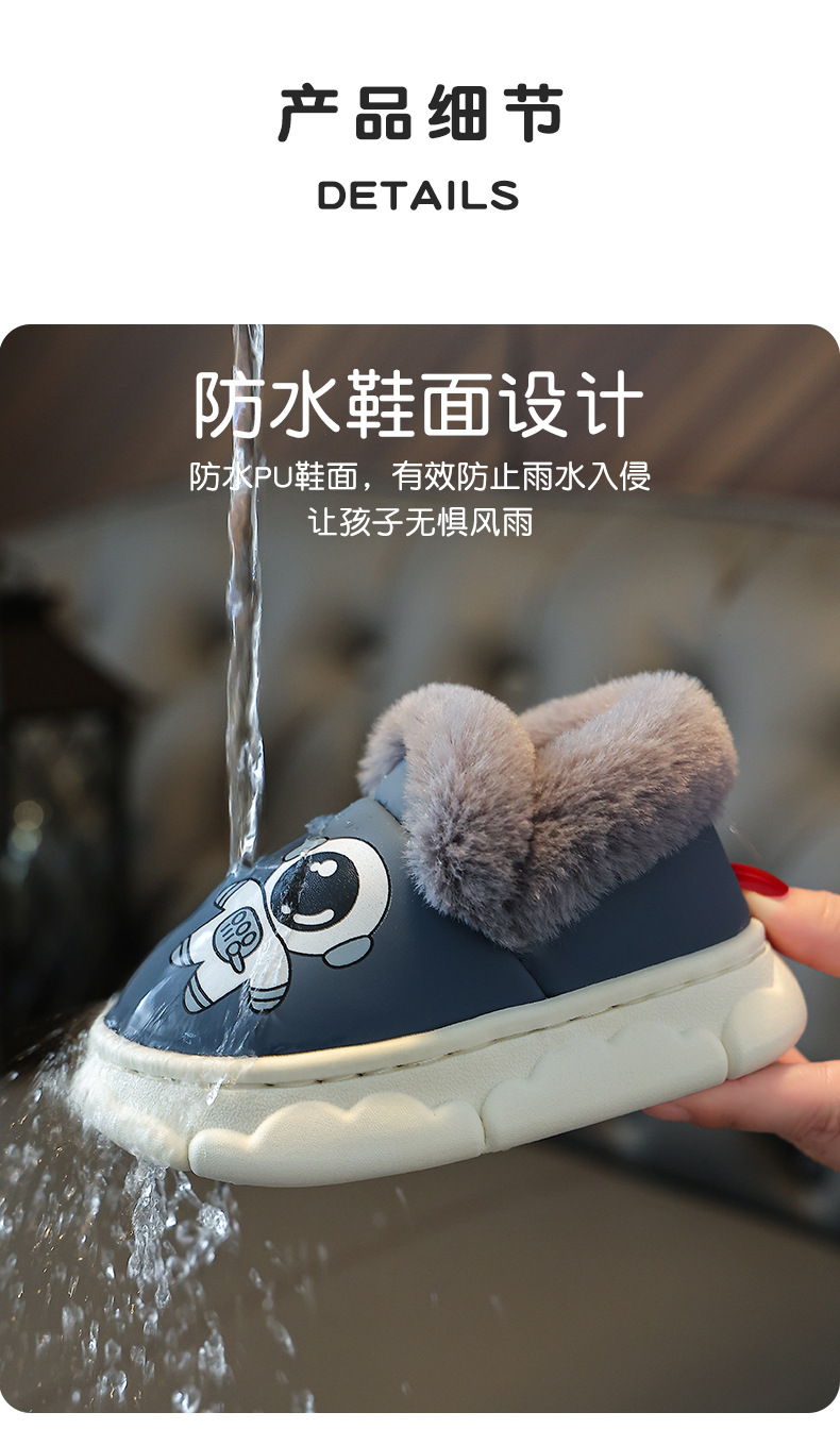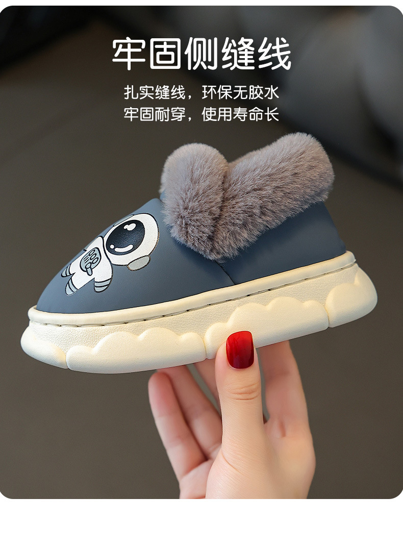 어린이 면화 슬리퍼 방수 PU 가죽 가을과 겨울 실내 미끄럼 방지 소년과 소녀 아기 면화 신발 가방 따뜻한 기모스토어 가기