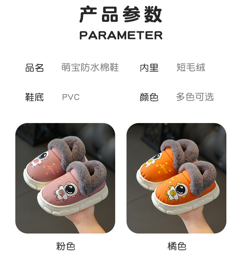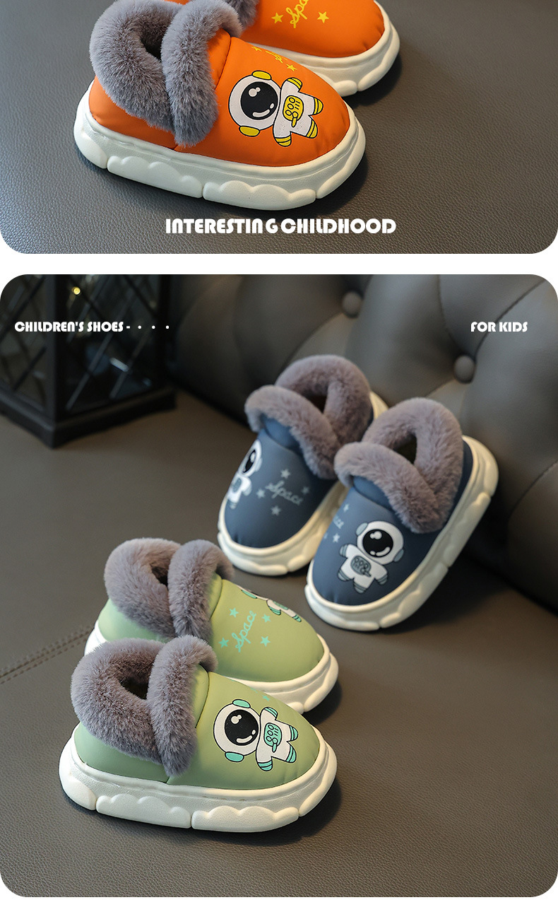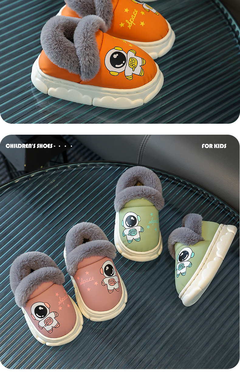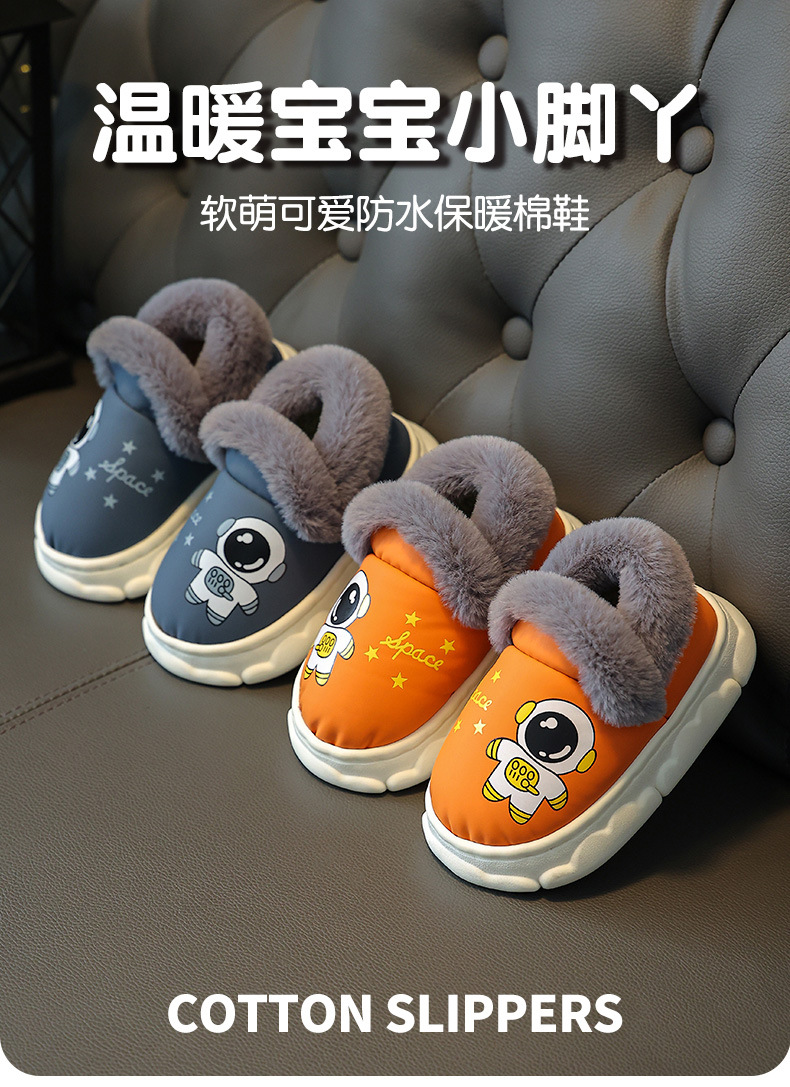 어린이 면화 슬리퍼 방수 PU 가죽 가을과 겨울 실내 미끄럼 방지 소년과 소녀 아기 면화 신발 가방 따뜻한 기모스토어 가기