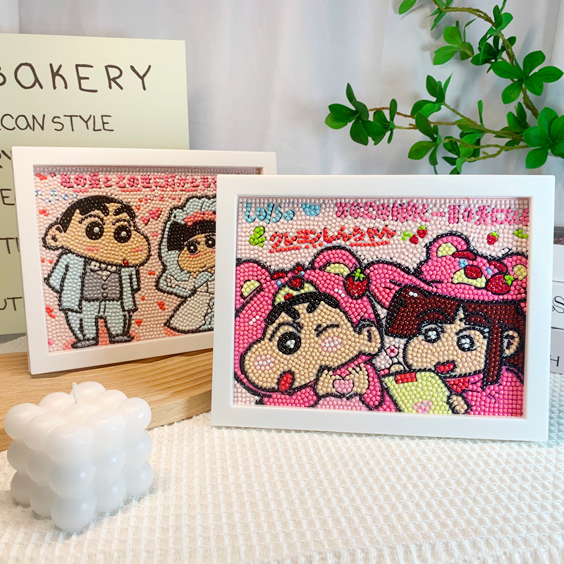 크레용 작은 새로운 다이아몬드 그림 수제 DIY 어린이 만화 애니메이션 전체 다이아몬드 스티커 커플 선물스토어 가기