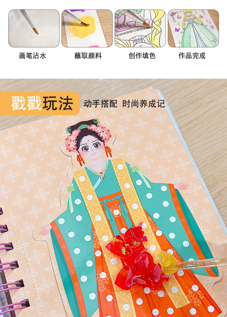 크로스 보더 3-in-one 수제 DIY 손으로 그린 스탬프 게임 어린이의 다양한 원피스 업 소녀의 그림 종이 장난감스토어 가기