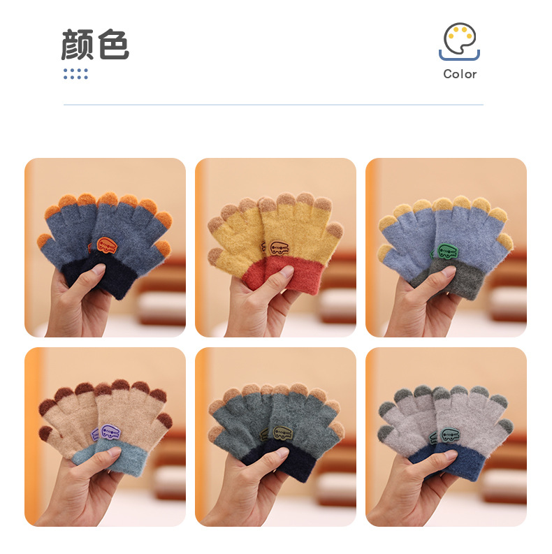어린이 장갑 다섯 손가락 손가락 아기 가을과 겨울 모든 경기 유행 소년 소녀 학생 두꺼운 1-3 세 2 따뜻한 아기