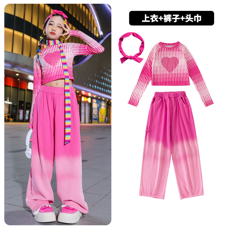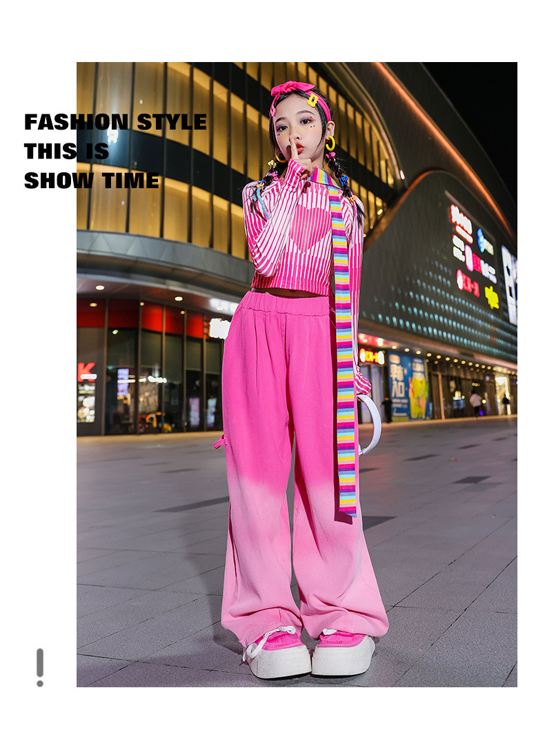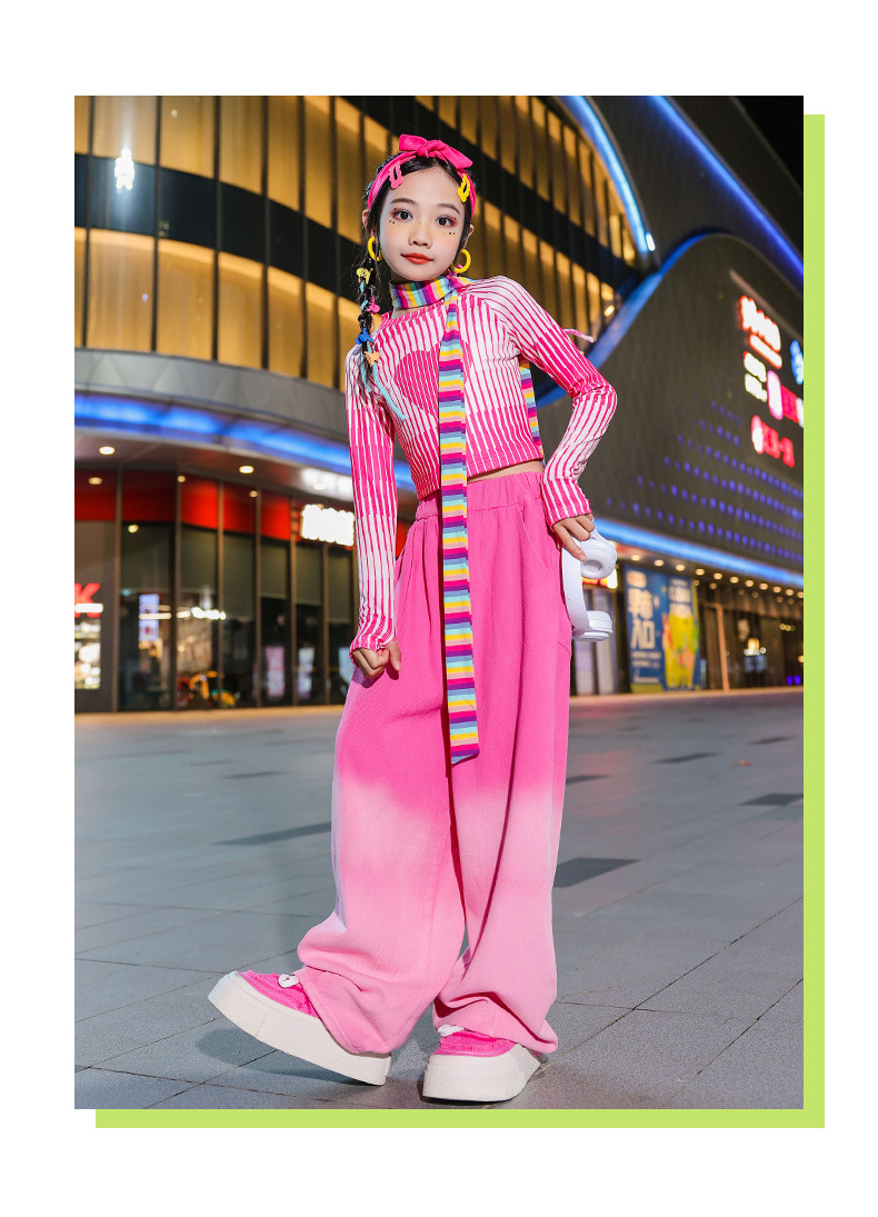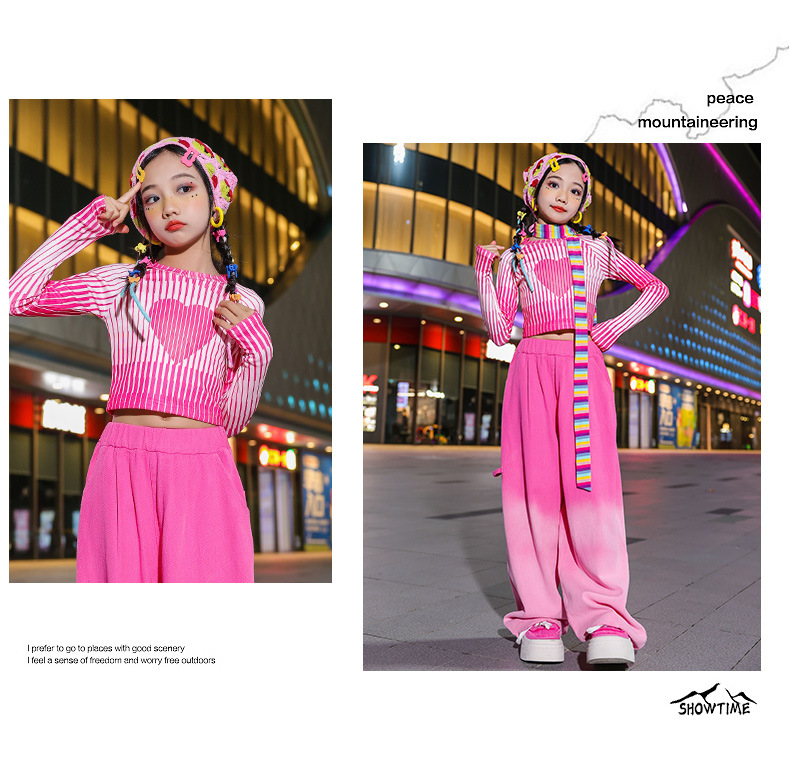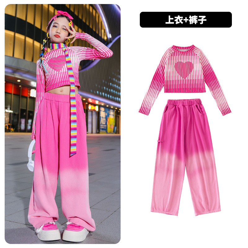 어린이 재즈 댄스 의류 도파민 배꼽 노출 슬리브 탑 세트 소녀의 재즈 연습 옷 소녀 공연 옷