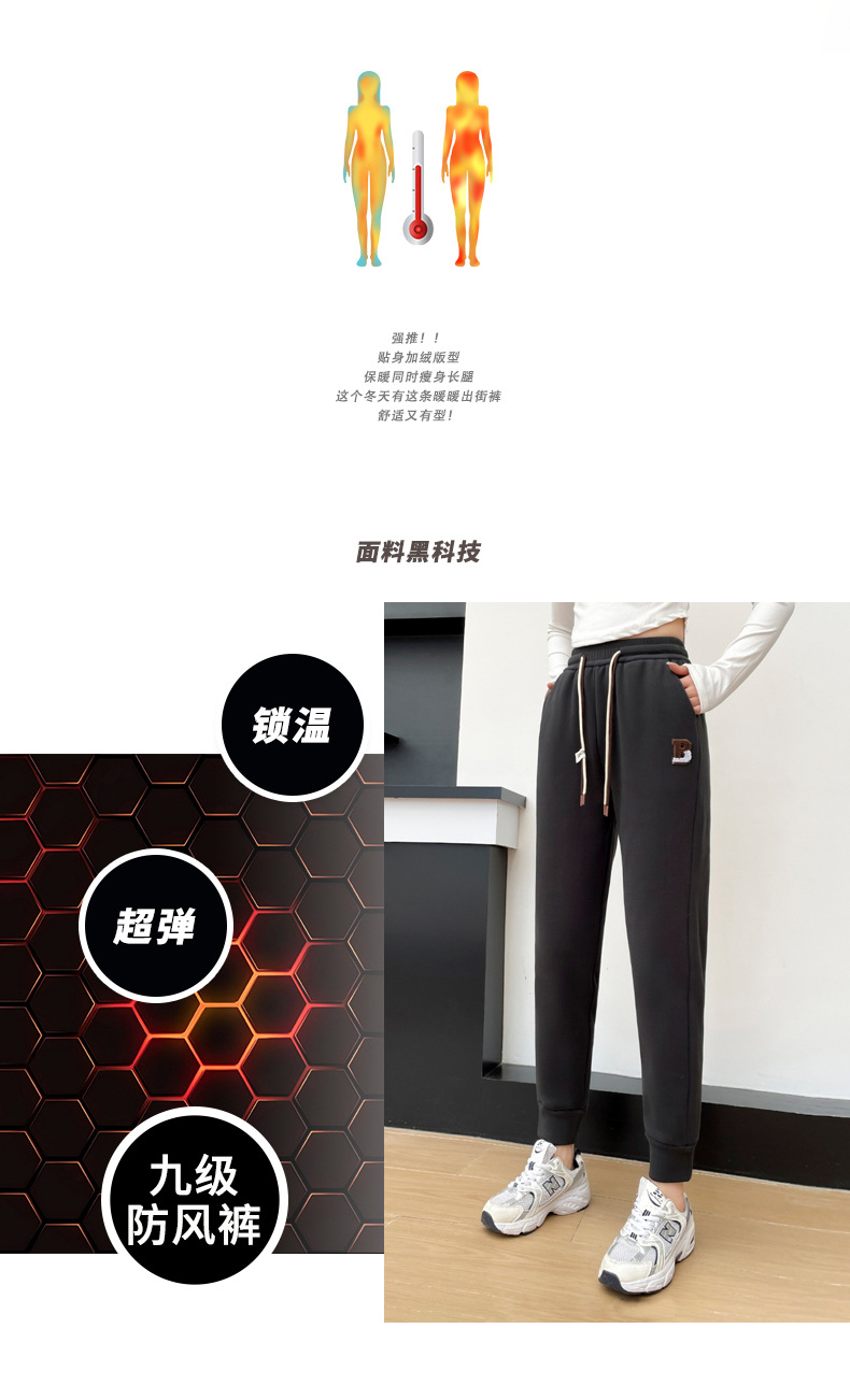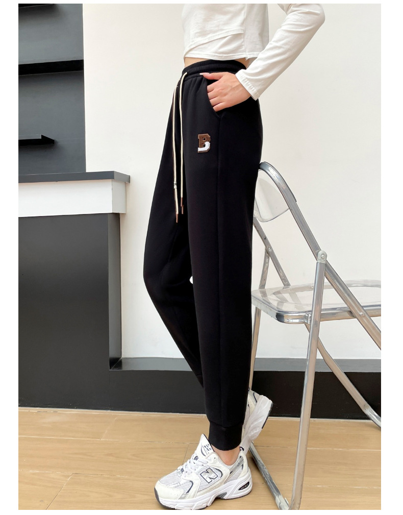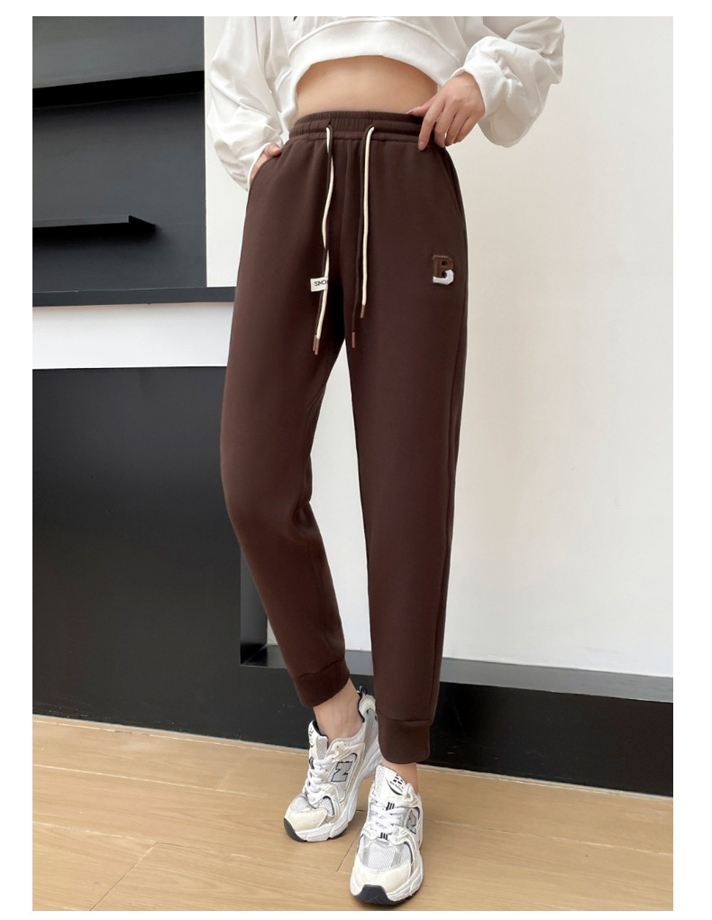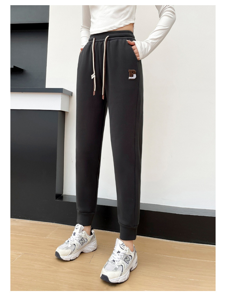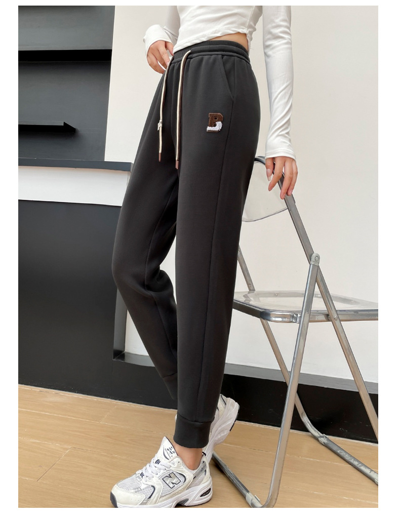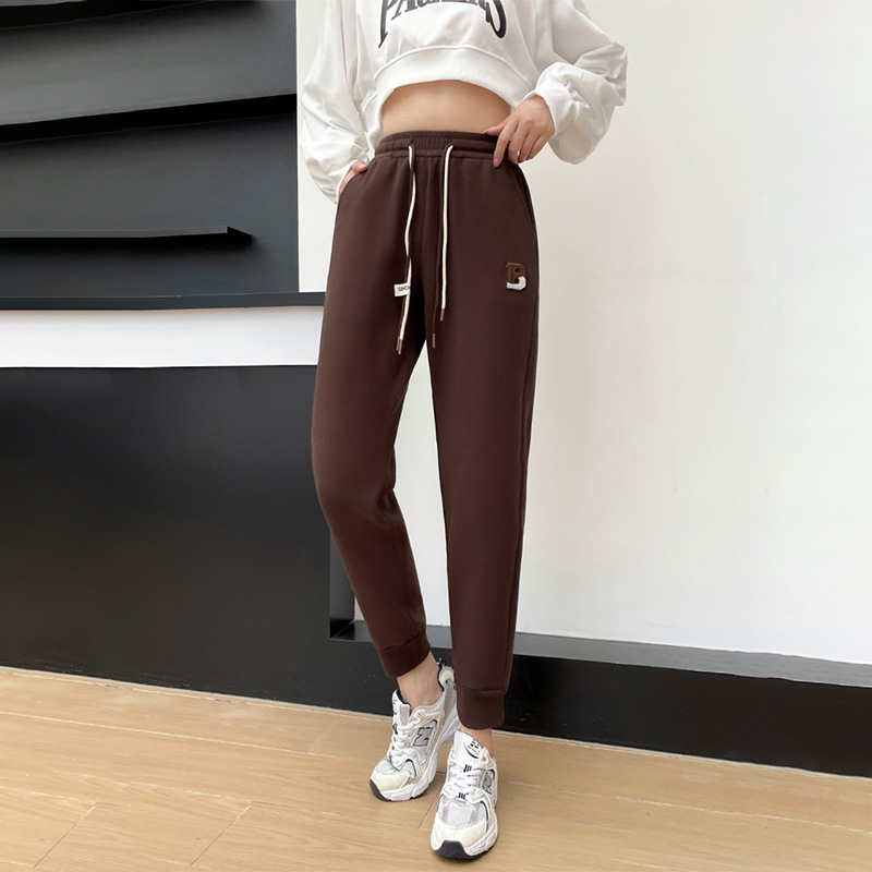 가을과 겨울 웨이 바지 여자의 기모 두꺼운 9 학년 방풍 바지 느슨한 다리 발가락 캐주얼 스포츠 바지 따뜻한 난방스토어 가기