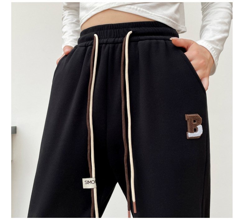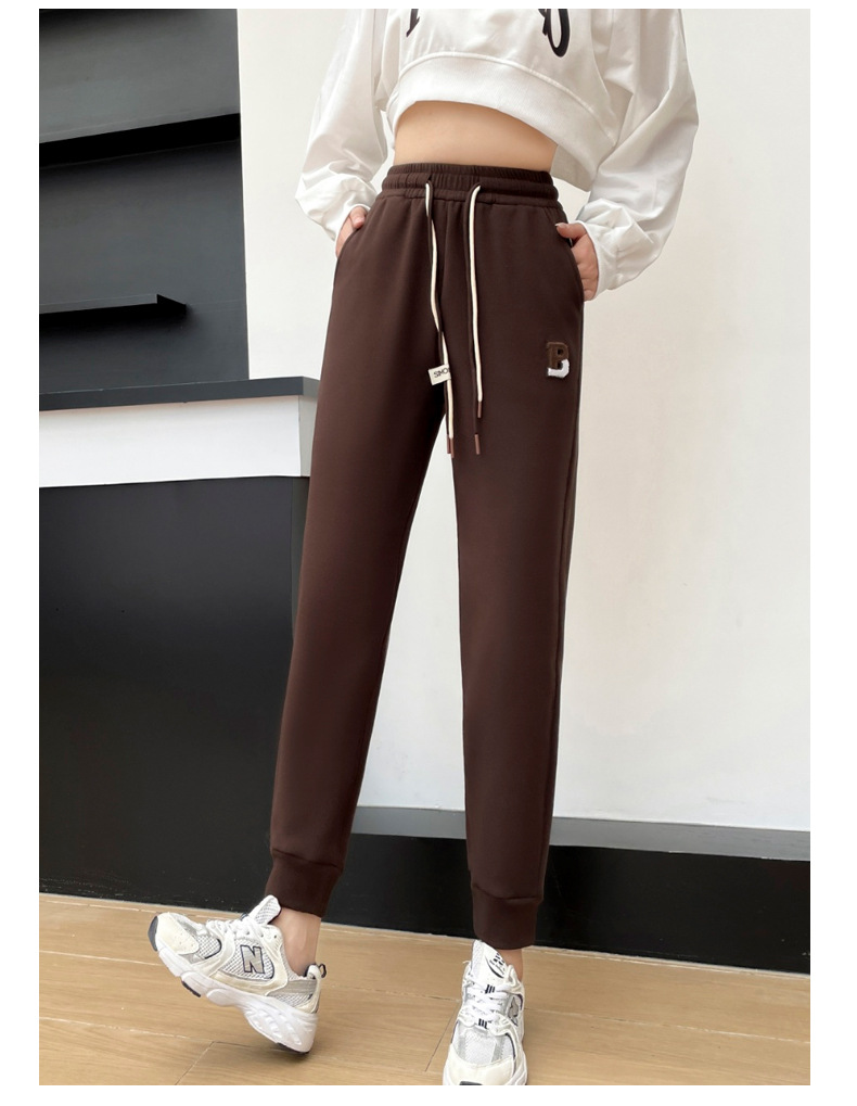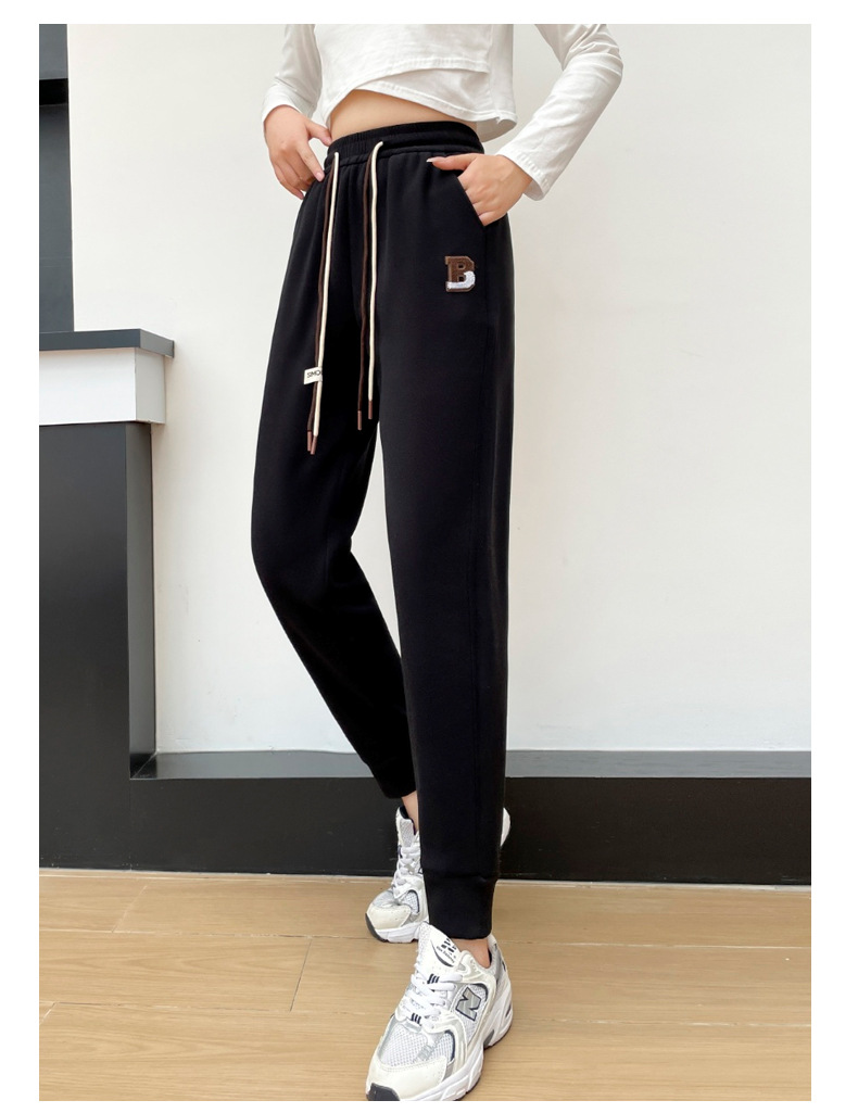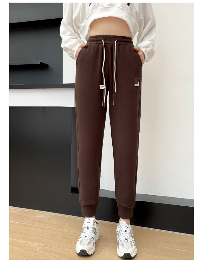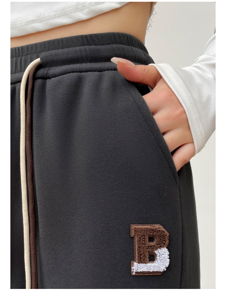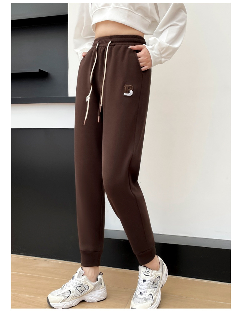가을과 겨울 웨이 바지 여자의 기모 두꺼운 9 학년 방풍 바지 느슨한 다리 발가락 캐주얼 스포츠 바지 따뜻한 난방스토어 가기