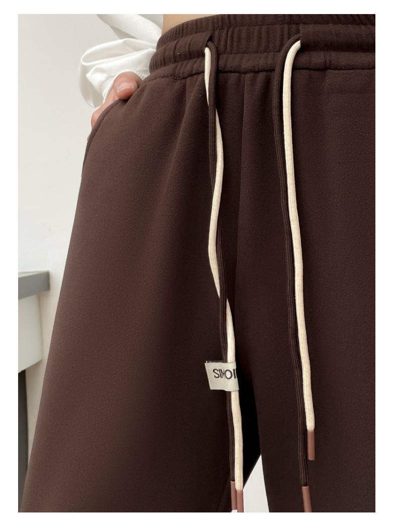 가을과 겨울 웨이 바지 여자의 기모 두꺼운 9 학년 방풍 바지 느슨한 다리 발가락 캐주얼 스포츠 바지 따뜻한 난방