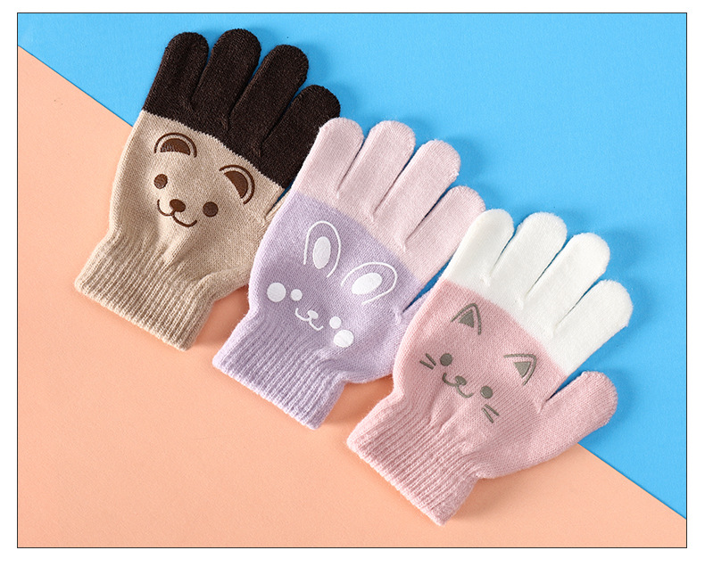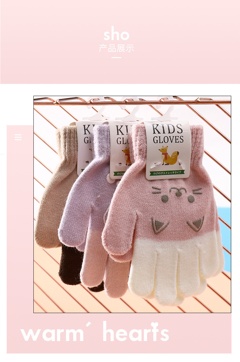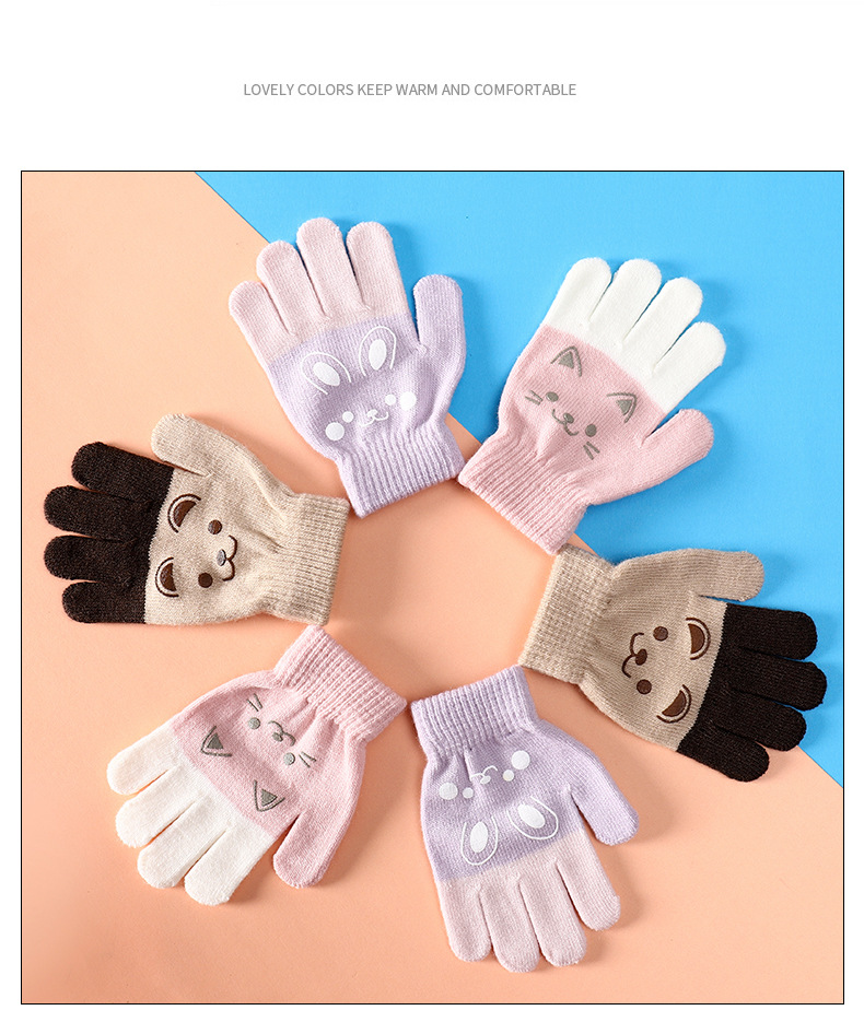 어린이 만화 장갑 가을과 겨울 따뜻한 손가락 귀여운 소년과 소녀 손가락 장갑 초등학생을위한 니트 장갑스토어 가기
