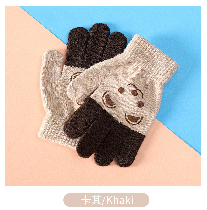 어린이 만화 장갑 가을과 겨울 따뜻한 손가락 귀여운 소년과 소녀 손가락 장갑 초등학생을위한 니트 장갑