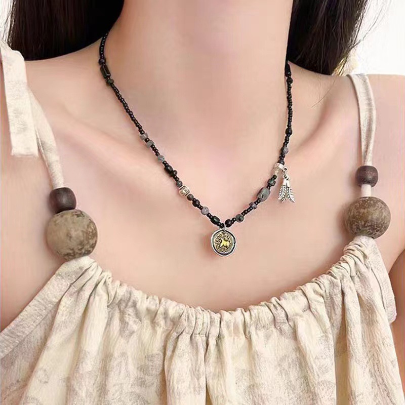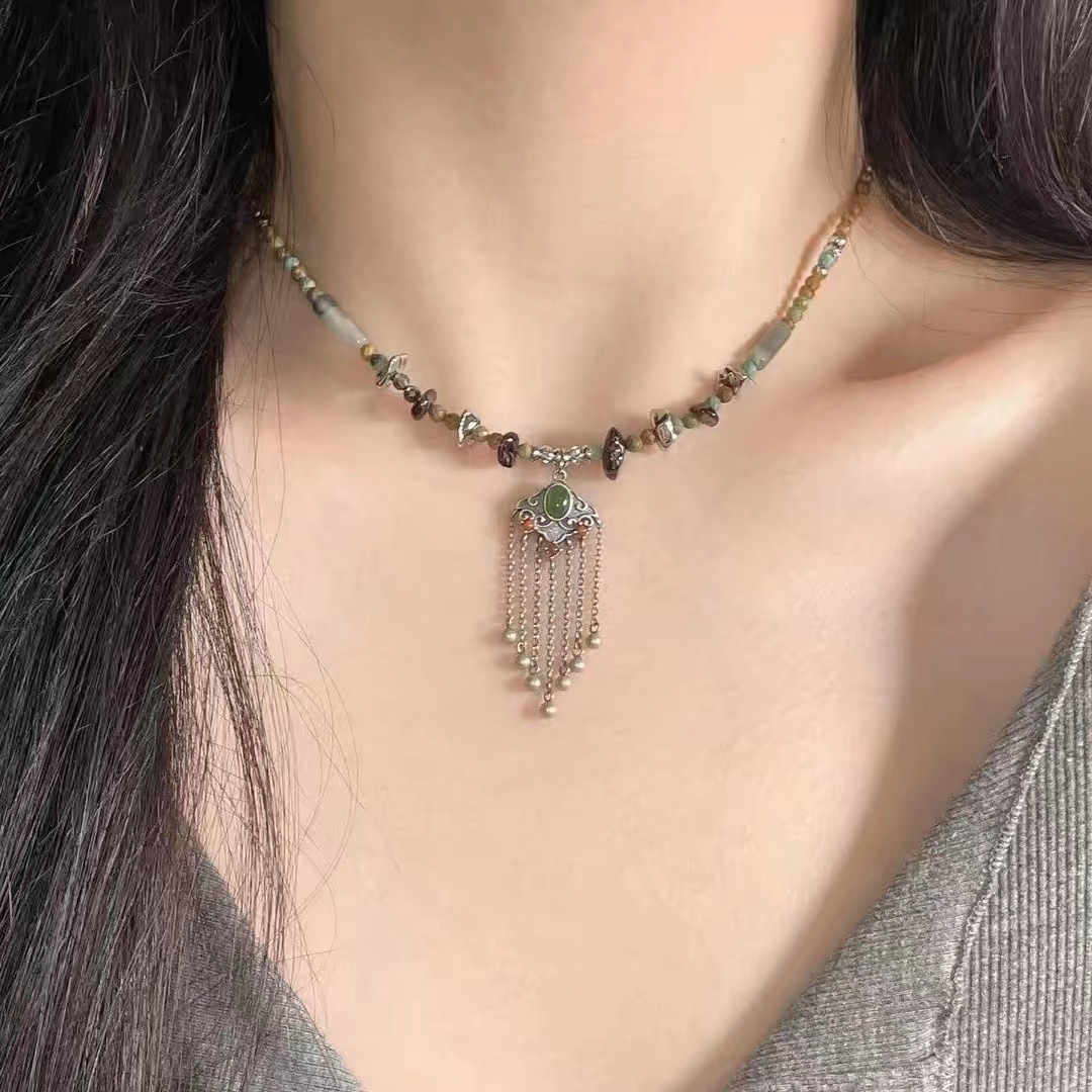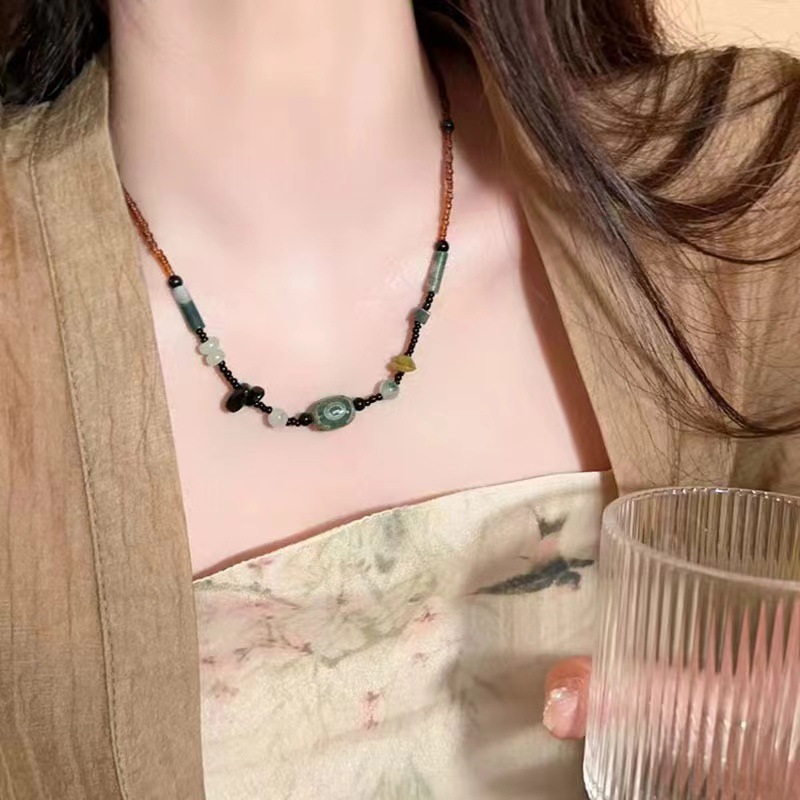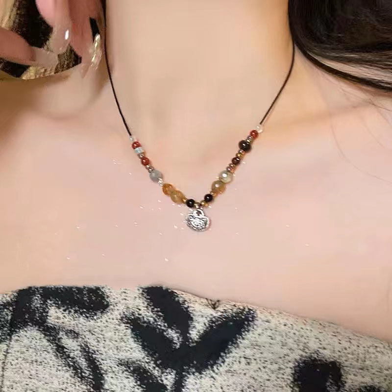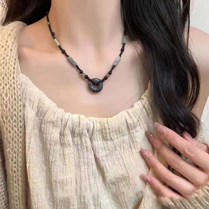 강남 여성 ~ 유약 자연 돌 평화 잠금 목걸이 여성의 가을 자연 돌 짠 로프 구슬 쇄골 사슬 조수스토어 가기