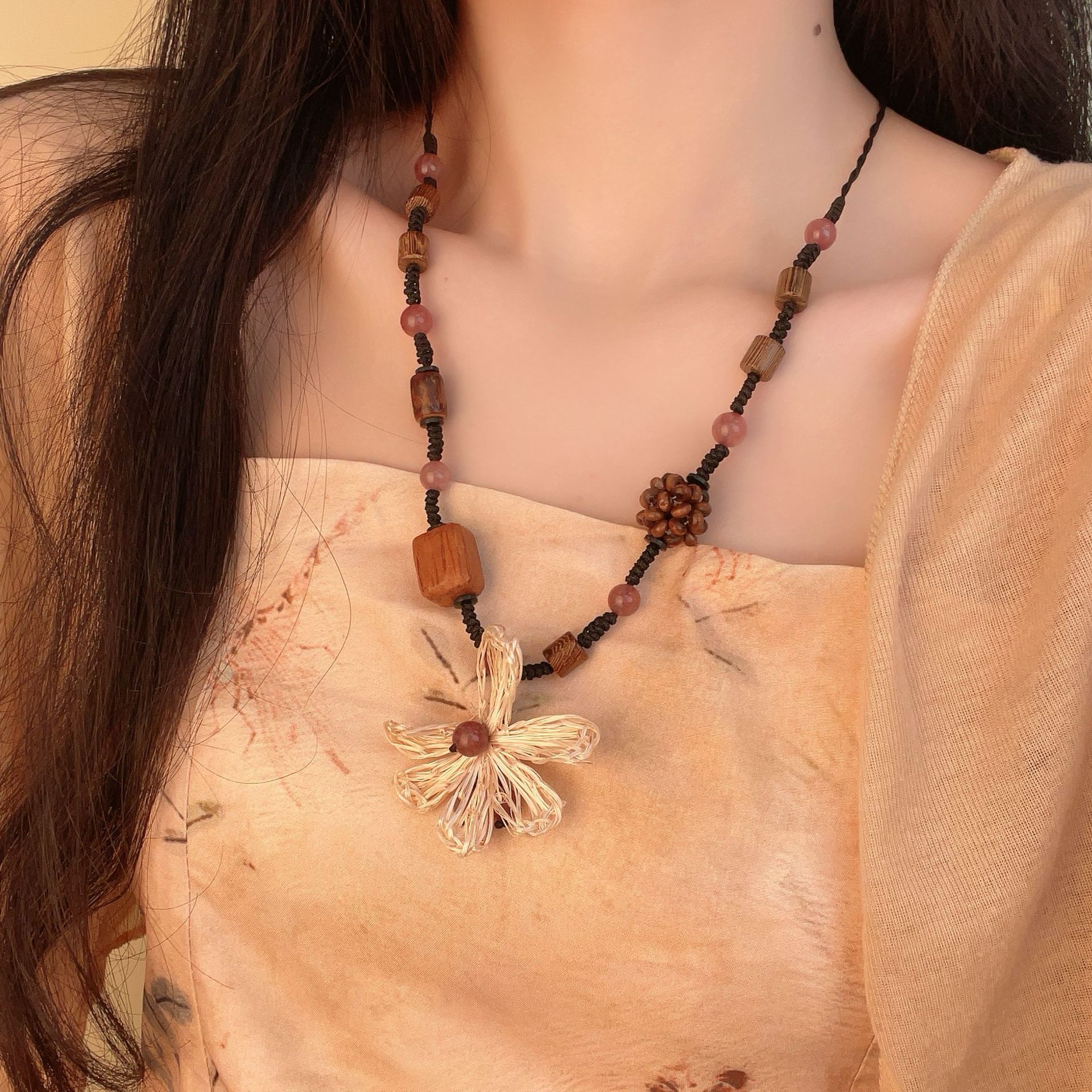 • 꽃 나무 짠 목걸이 X3757