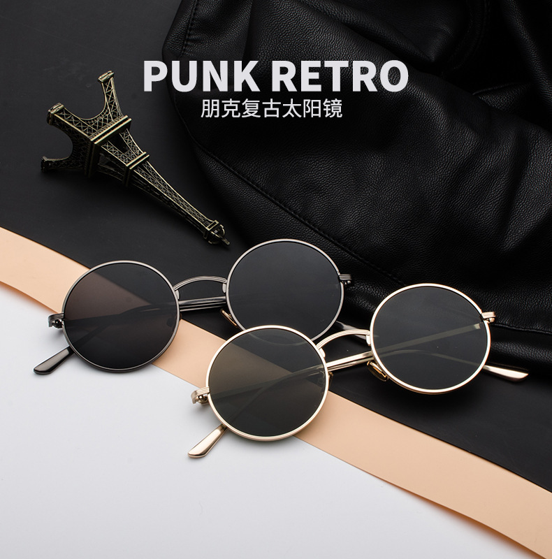 클래식 스몰 라운드 프레임 선글라스 남성과 여성의 메탈 레트로 펑크 선글라스 모든 경기 슬리밍 하라주쿠 스타일 맞춤 안경스토어 가기