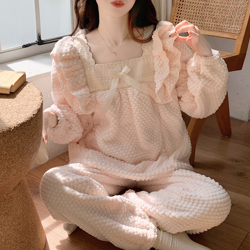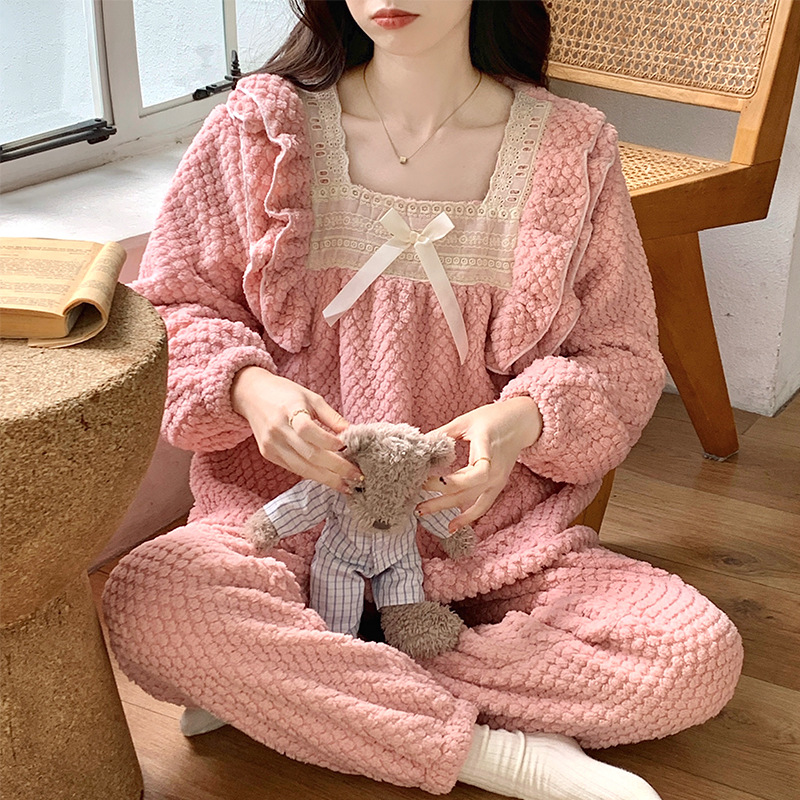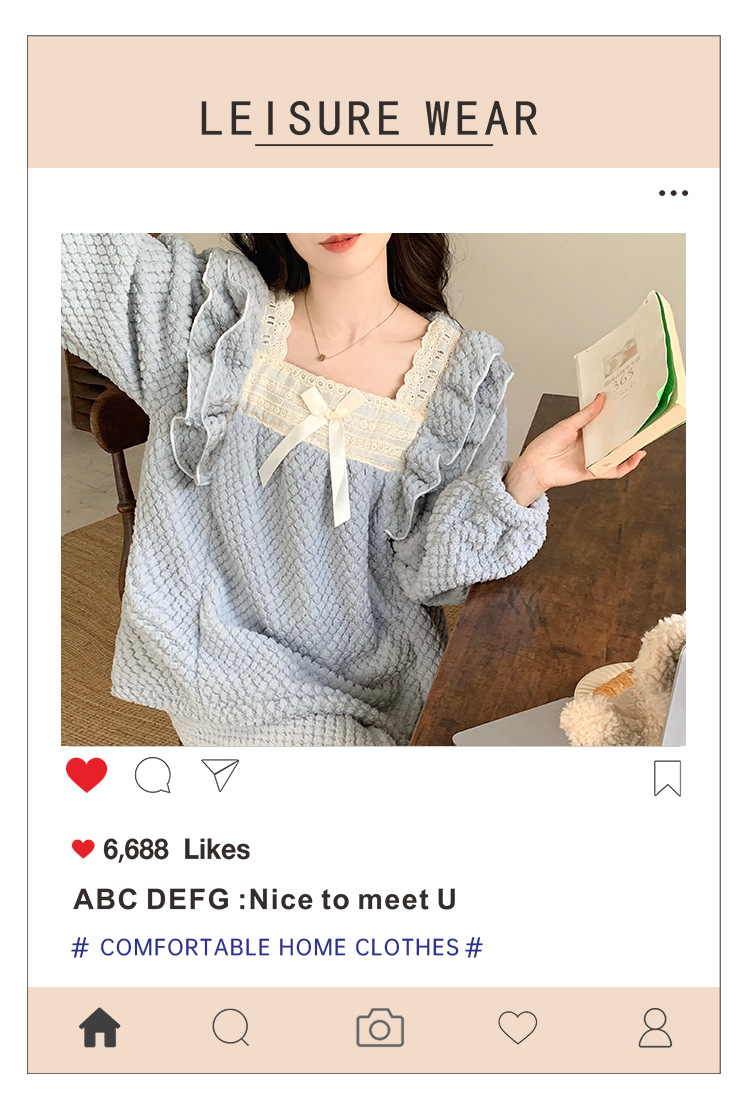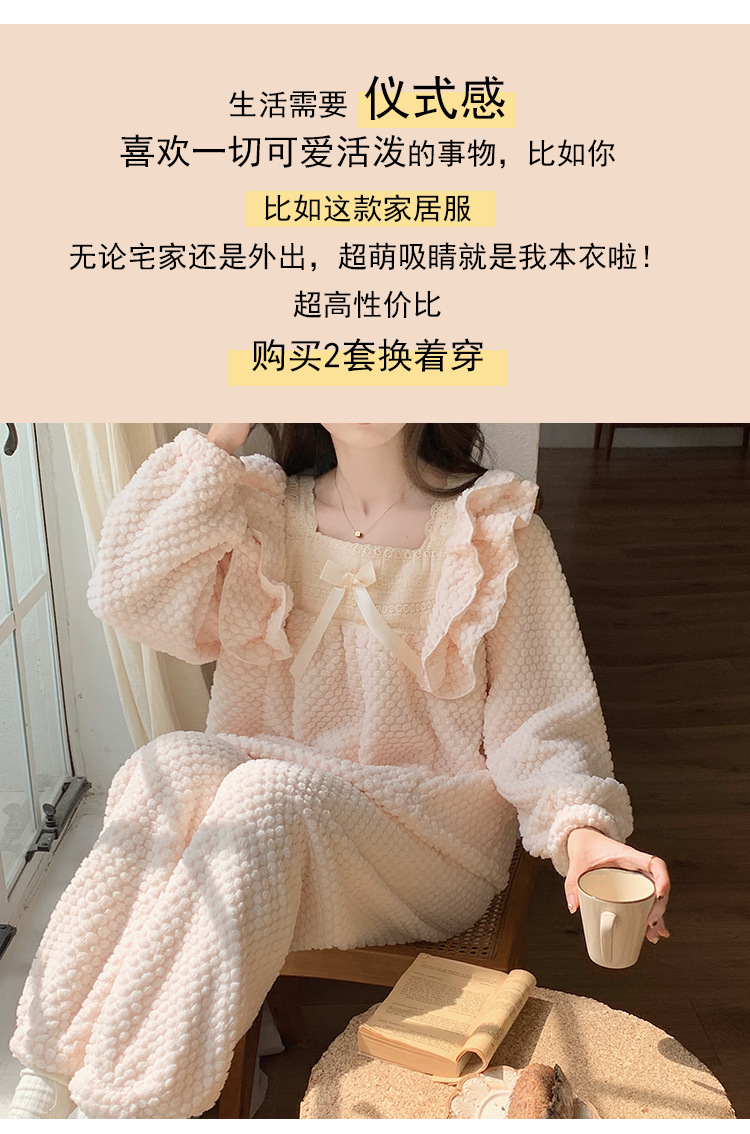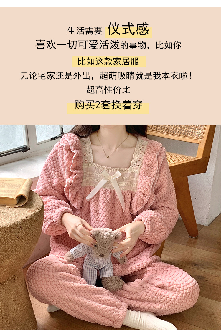 겨울 새로운 잠옷 여자의 긴 소매 장미 벨벳 레이스 공주 바람 느슨한 플러스 사이즈 가을과 겨울 가정 옷 도매스토어 가기